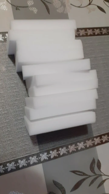 товар соответствует описанию,доставка со дня заказа почти 2 месяца,упаковано в тонкий пластиковый почтовый пакет,положили 9 штук вместо заявленных 10-ти,губки тонкие,но с грязью справляются,с продавцом общаться не было необходимости