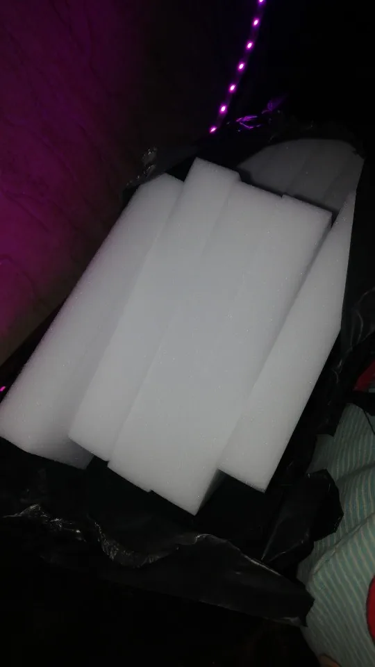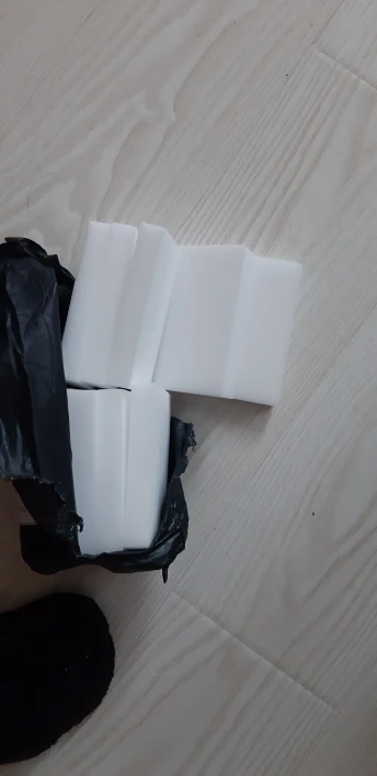 на вид как нарезанные кусочки поролона. не совсем похоже на меламиновые губки. доставка в Воронеж 3 недели. упаковано сразу в почтовый пакет