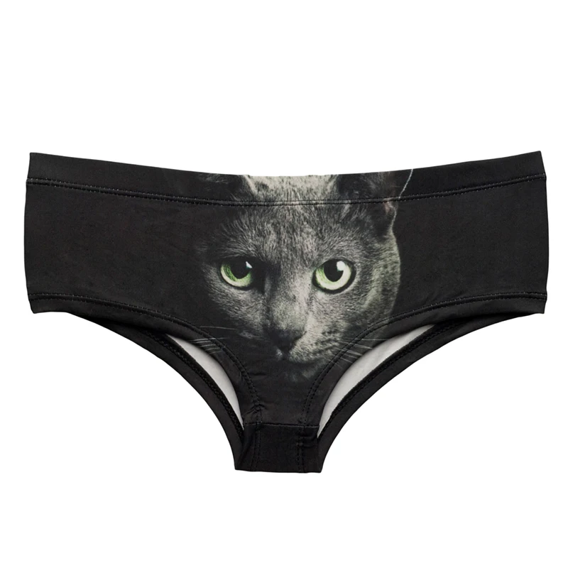 Новые женские трусики с 3D принтом черного кота, бесшовное нижнее белье, сексуальные трусики