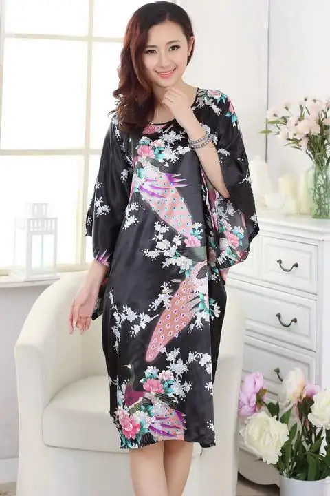 Модное китайское женское шелковое кимоно, банное платье, один размер