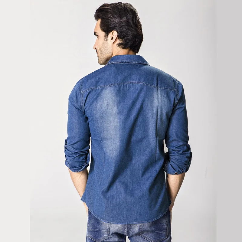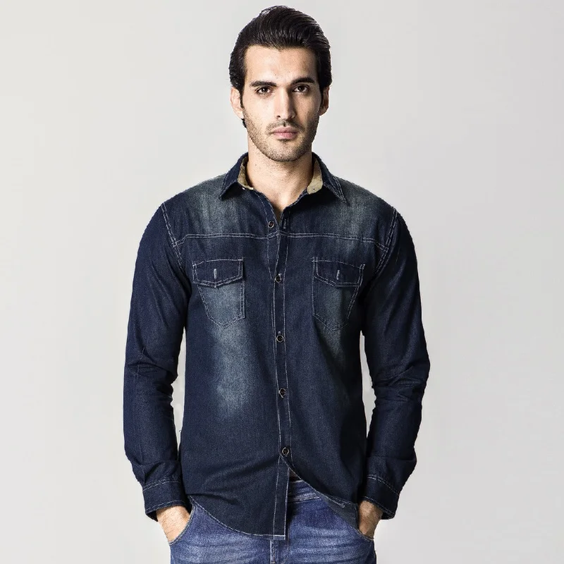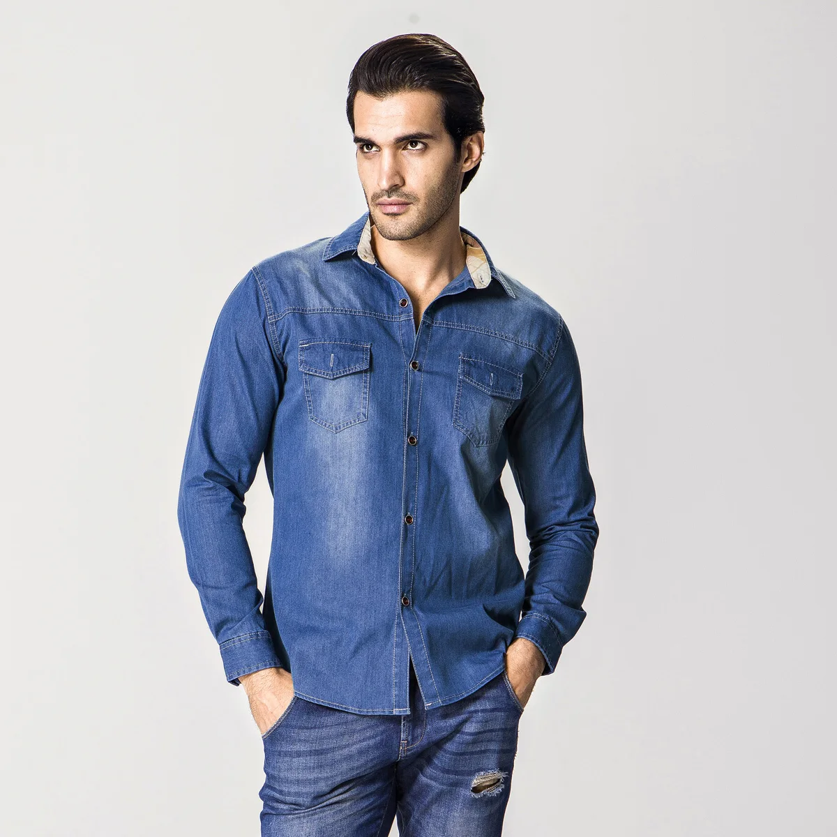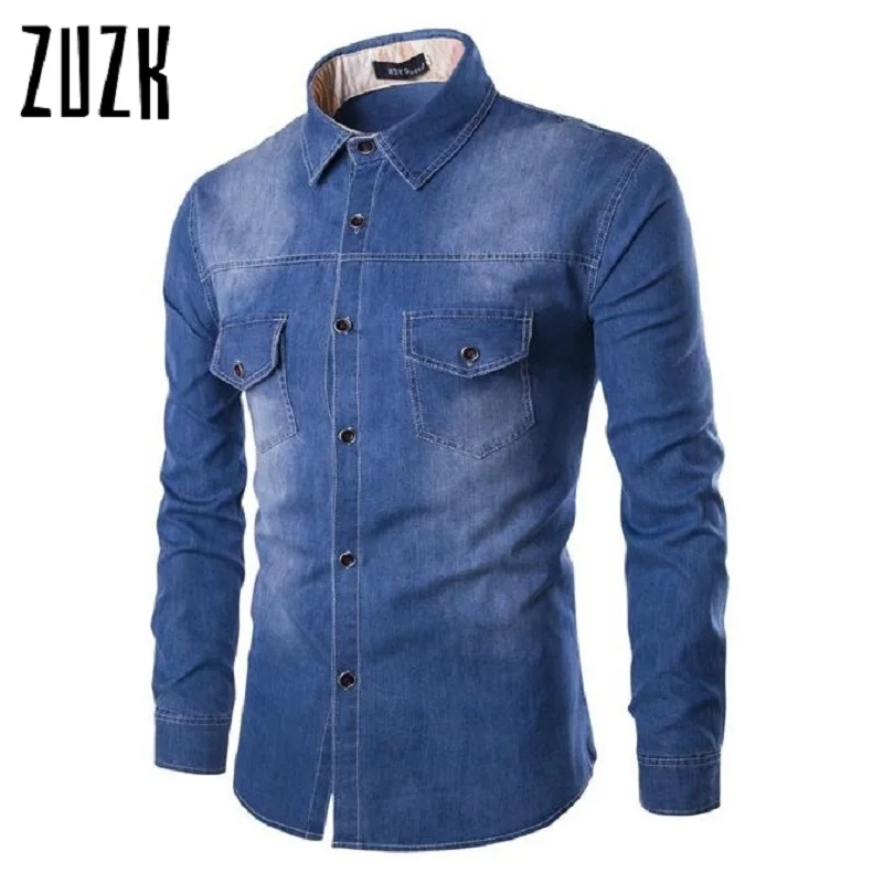 Прямая поставка, Мужская джинсовая рубашка, Мужская Модная приталенная Повседневная рубашка, рубашки с длинным рукавом, мужская Ковбойская Рубашка