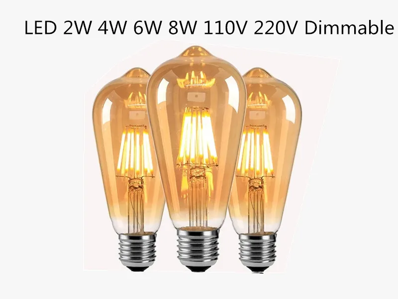 Светодиодные лампы накаливания Эдисона, 6 шт., s ST64, E27 B22, 110 В, 220 В, 2 Вт, 4 Вт, 6 Вт, 8 Вт, 2700K, 360 градусов