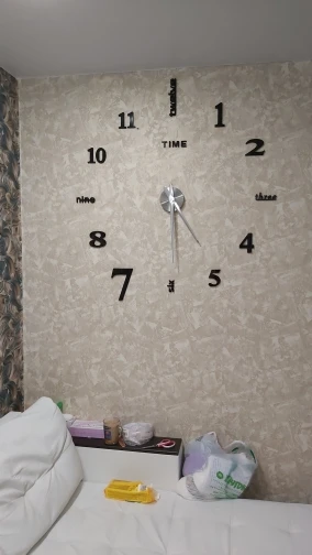 Часы отличные, объёмные, глянцевые, прекрасно смотрятся на стене, фото не передаёт всей красоты, спасибо продавцу упаковал в пенопласт в виде коробки. В комплекте имеется тонкая картонная линейка с окружностью, благодаря которой часы клеить легко.