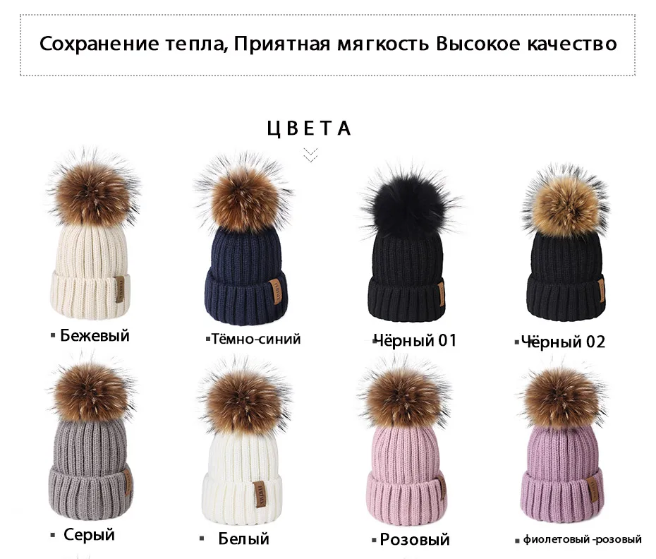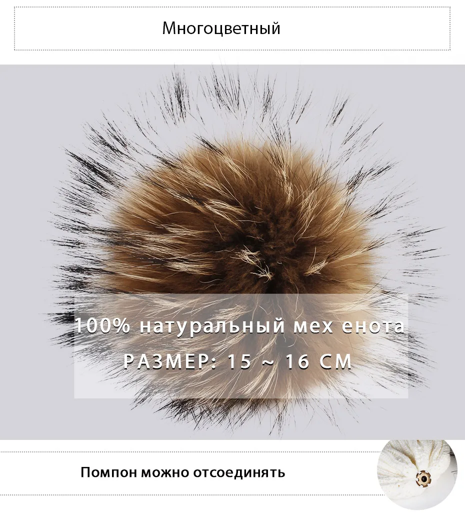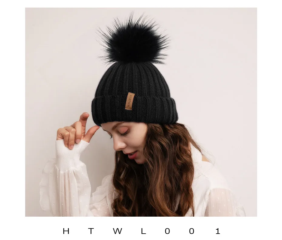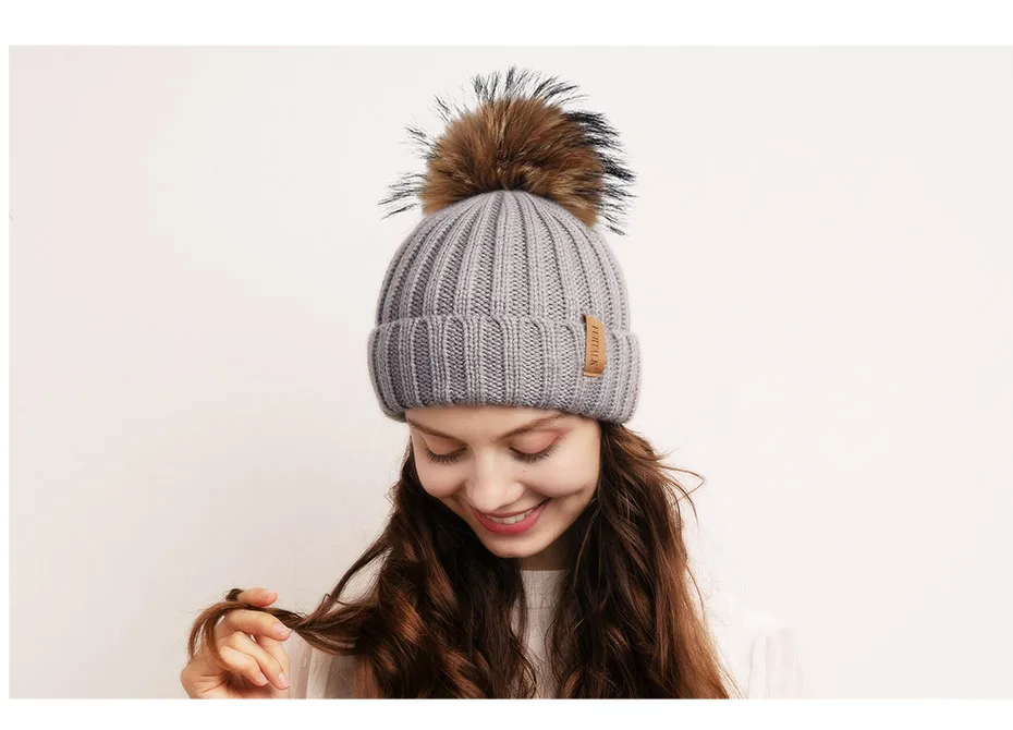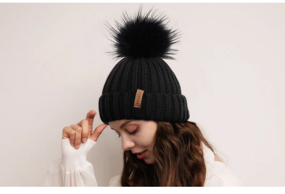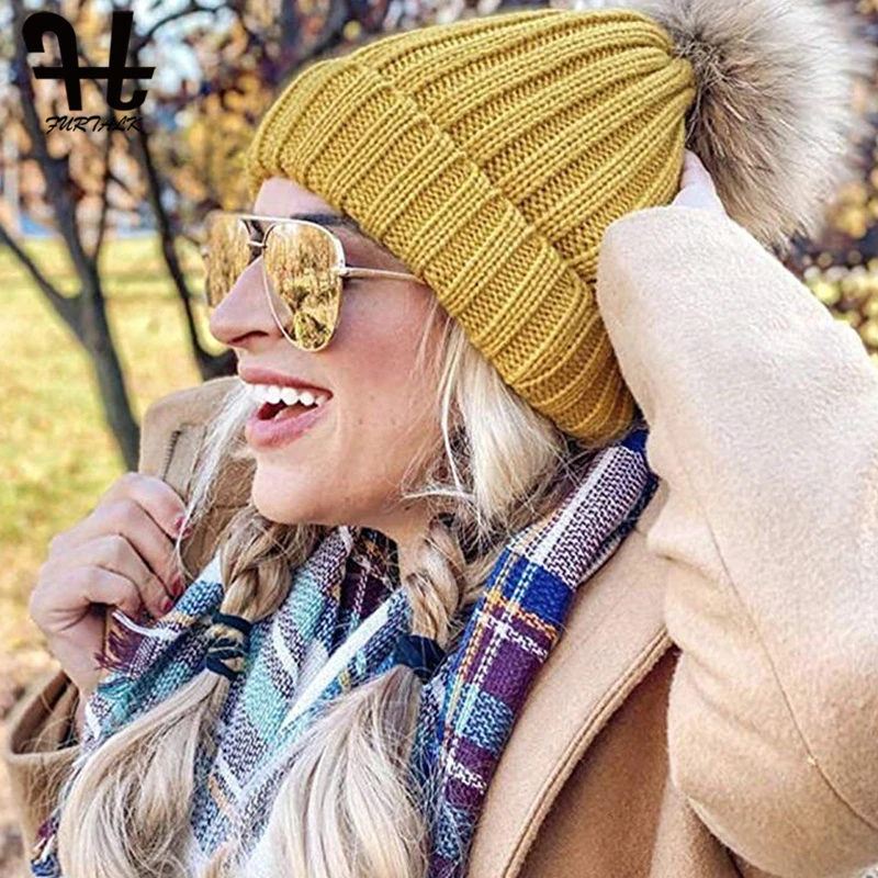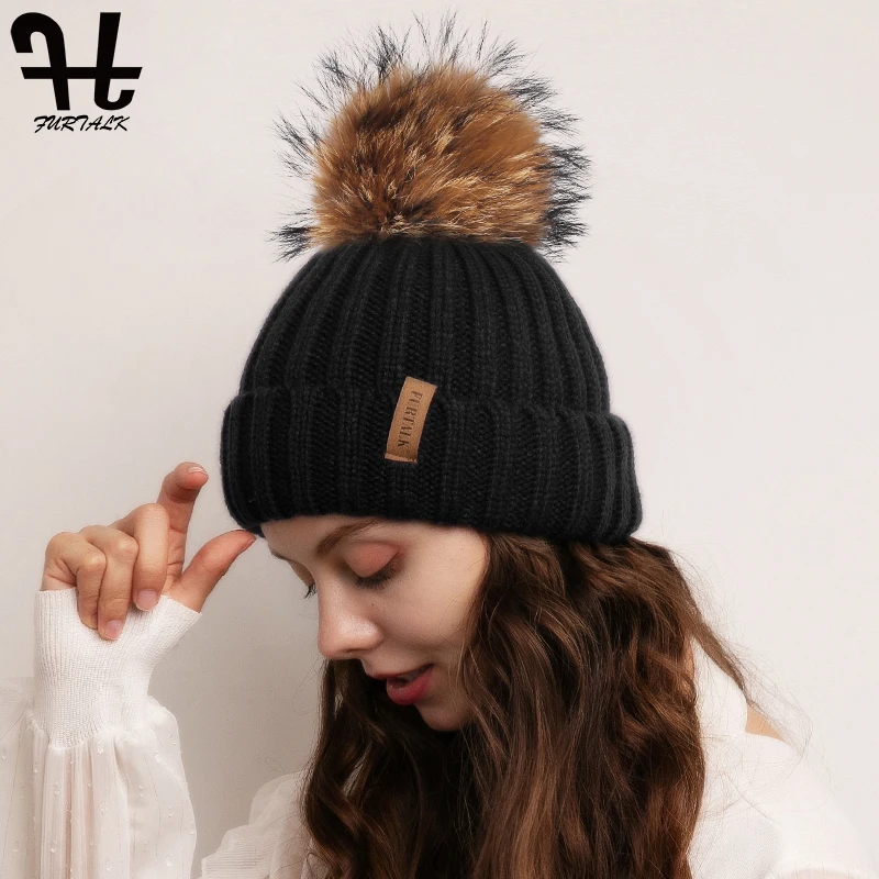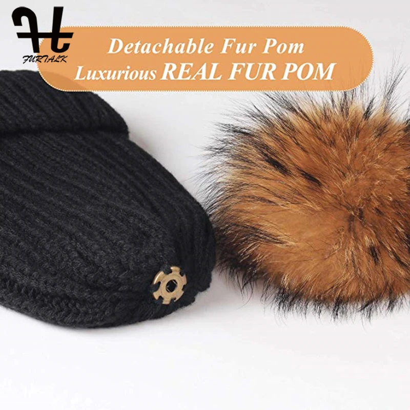 Furtalk Трикотажные Настоящее Меховая Шапка 100% Реальная Мех Енота Пом Пом Hat Зима Женщины Hat