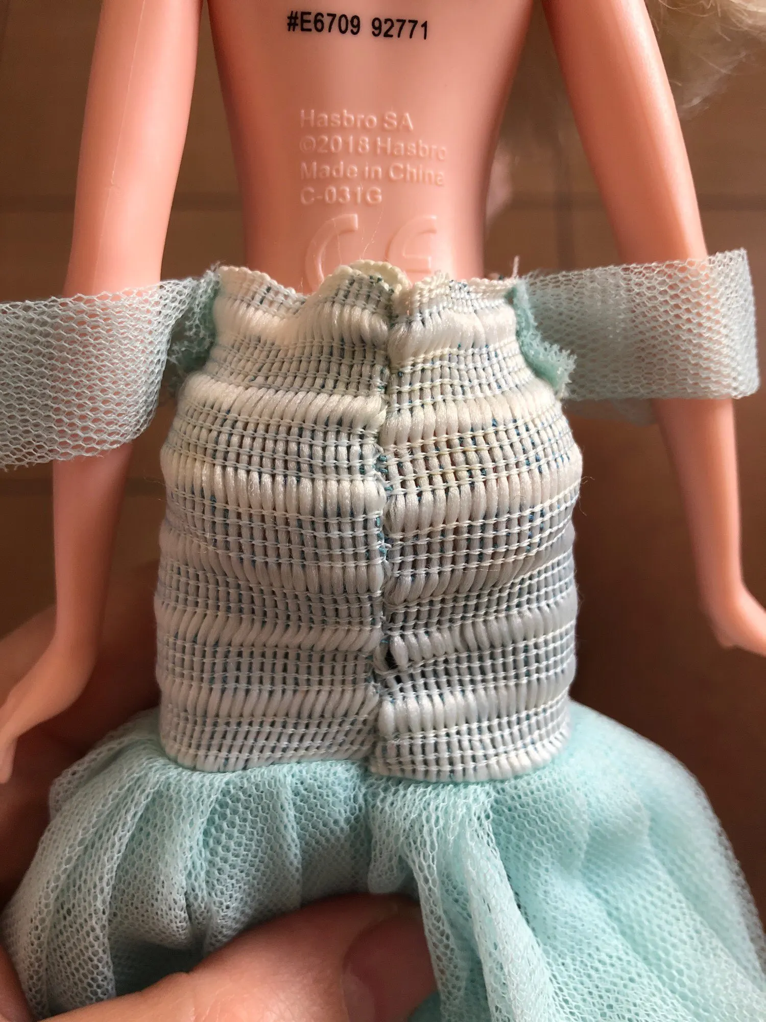 Для сравнения примерила на несколько кукол разных производителей.На барби (2 фото) сидит хорошо, но немного съезжает. На Эльзе(1 фото) село отлично, немного тяжело налазит на бедра, не сползает. На рапунцель (3 фото) село хорошо, не съезжает. На барби (4 фото) село, но налазит сложно и если надевать несколько раз скорее всего порвётся или растянется. Можно сказать, что хорошо подходит для кукол стандартного типа тела как у барби. На Монстер хай, эверафтер хай, пуллип будет большим. Также в подарок положили очки)