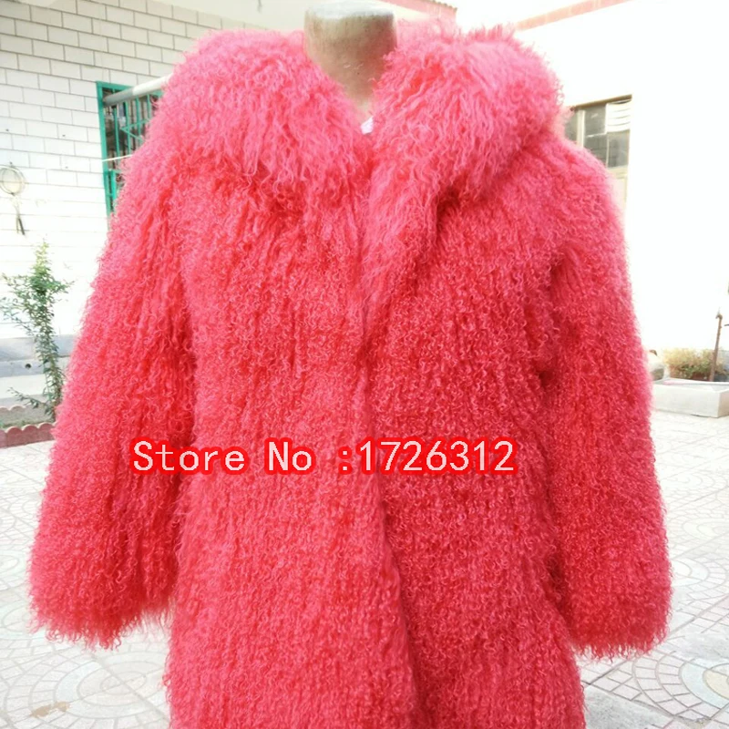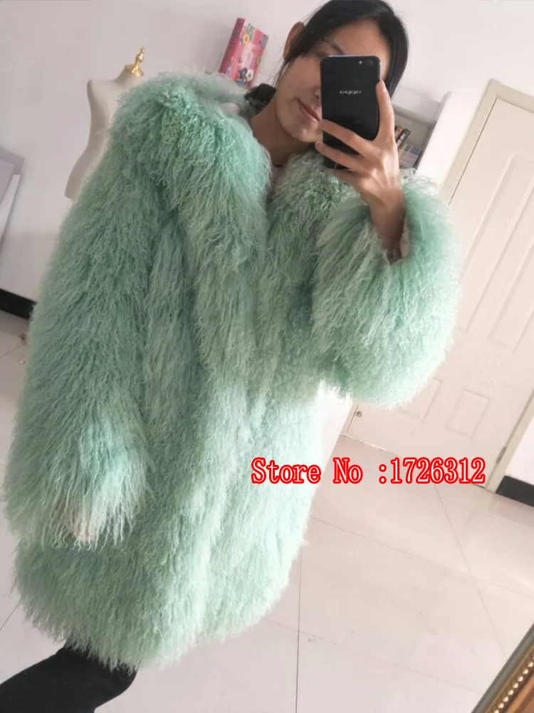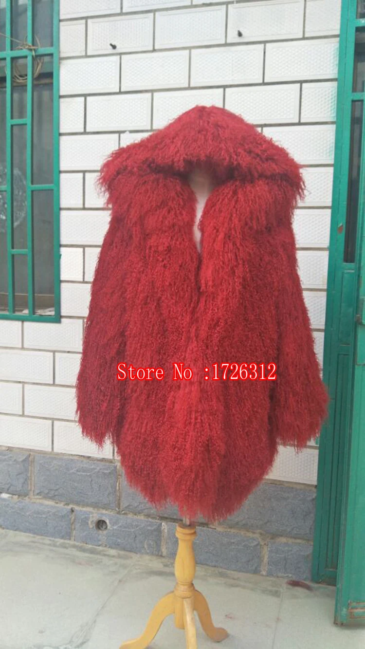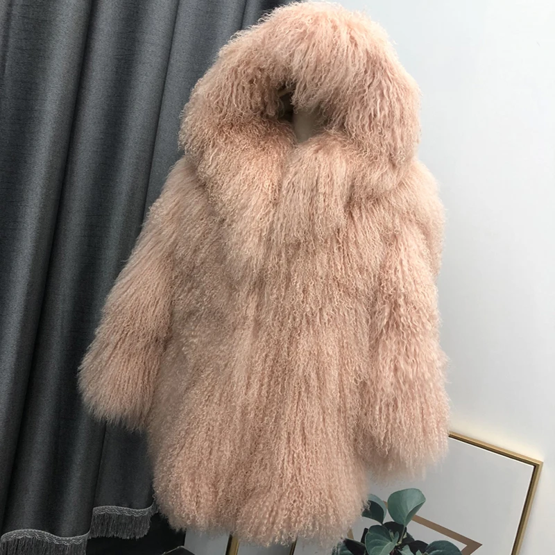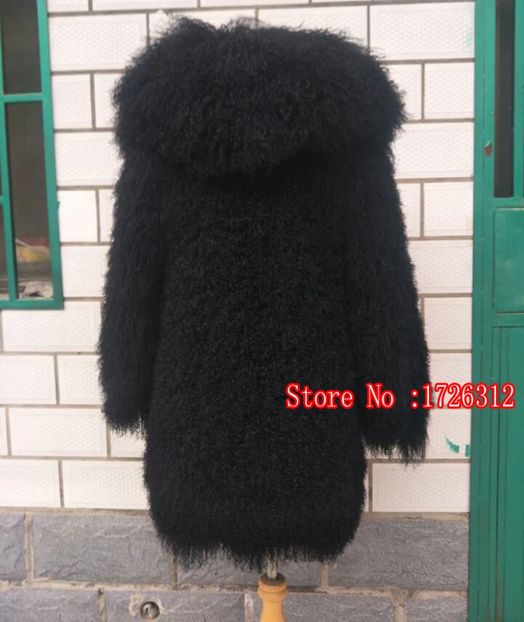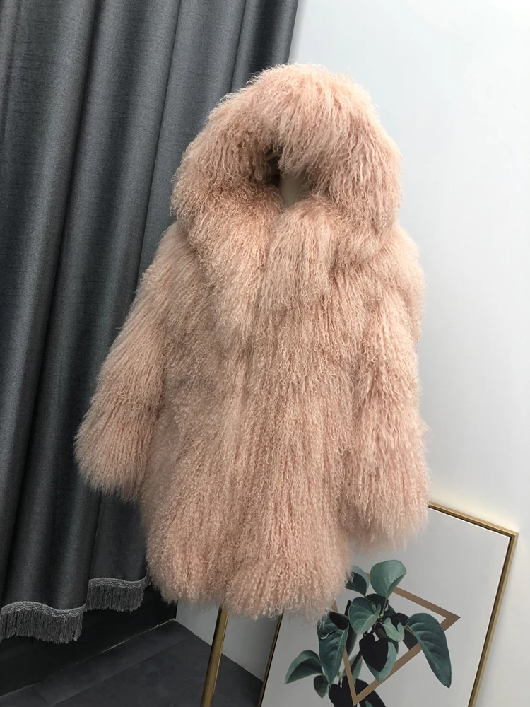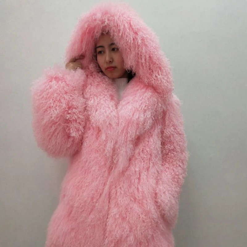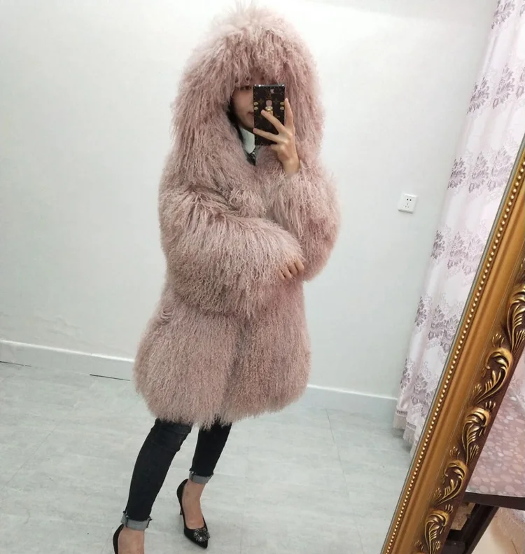 Женские настоящие монгольские овцы, шуба с капюшоном, Пляжная шерсть, мех средней длины, пальто из овчины, зимняя меховая верхняя одежда, Женская куртка
