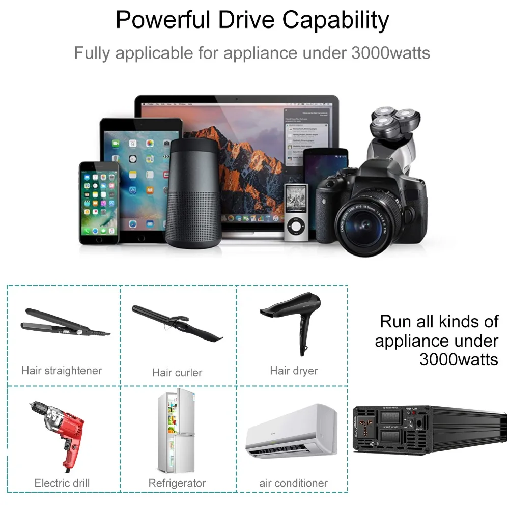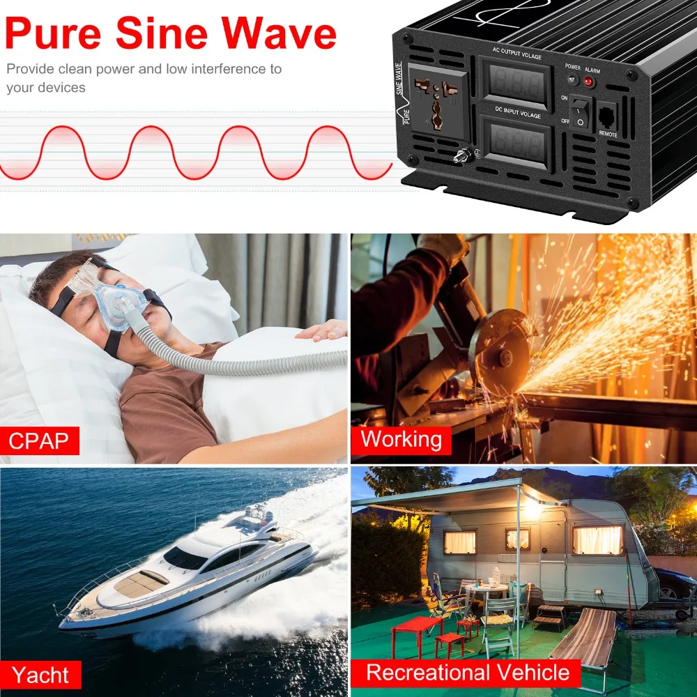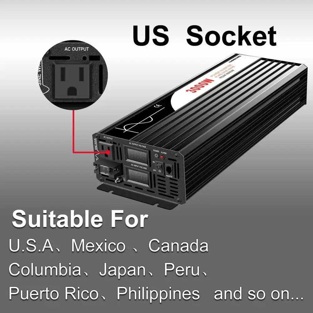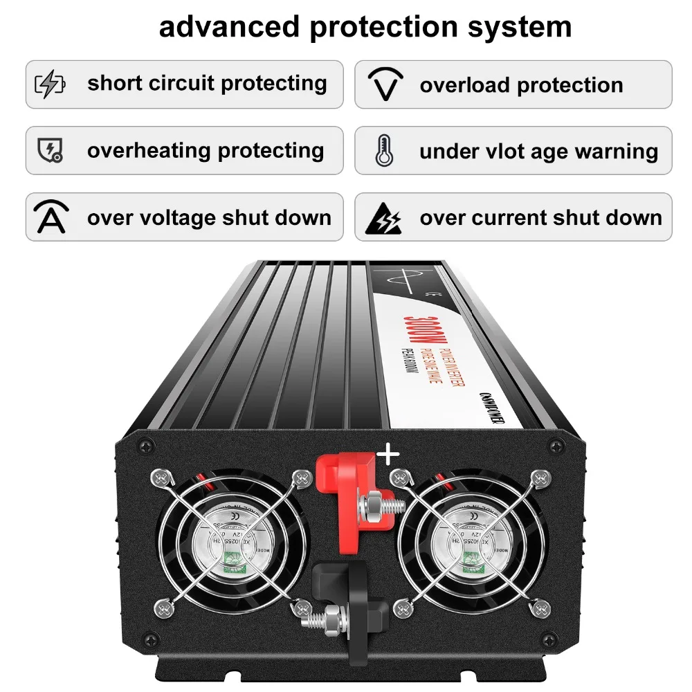 Инвертор синусоидального сигнала 3000 Вт, новый инвертор 12v 220v солнечной энергии для автомобиля, 12 В, 24 В, 48 В до 110 В, 220 В