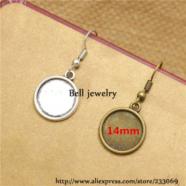 40 шт./лот 14 мм античная бронза сплав Круглые висячие серьги крючки кабошон основа установка DIY ювелирных изделий фурнитура для изготовления