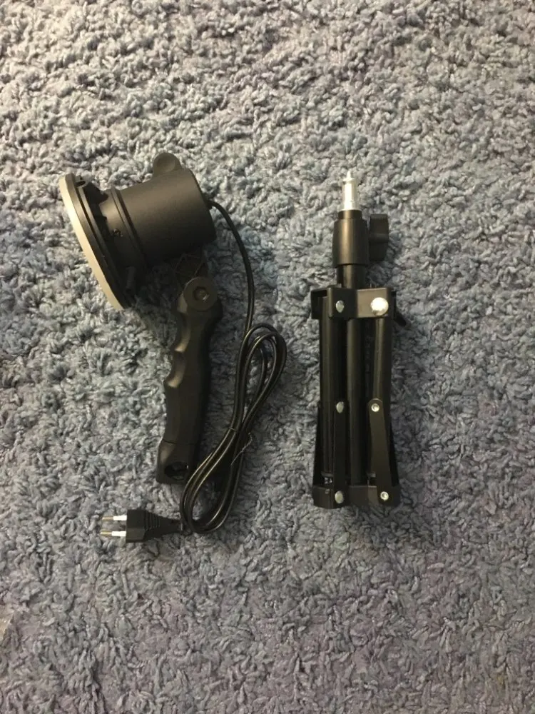 Посылка пришла за 3 недели, все целое. Склеен аляпово, но вроде крепко, на штативе почему болт, который мешает надеть на него лампу, странно. Свет оооочень ярко.