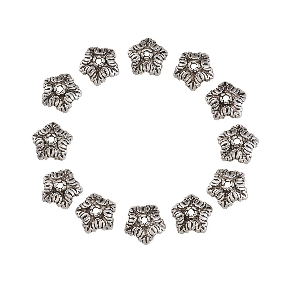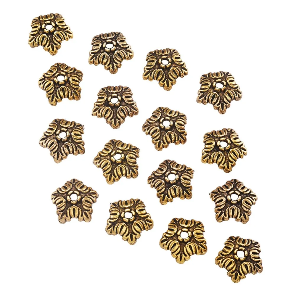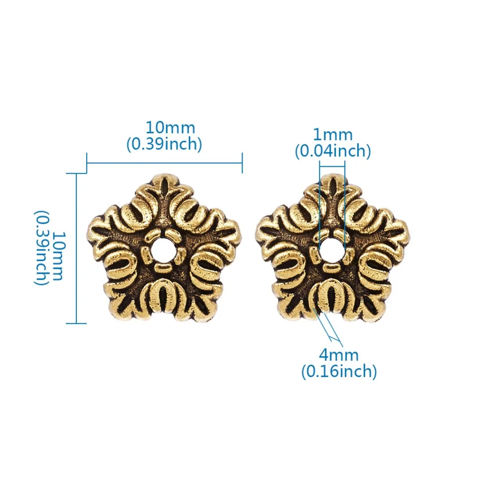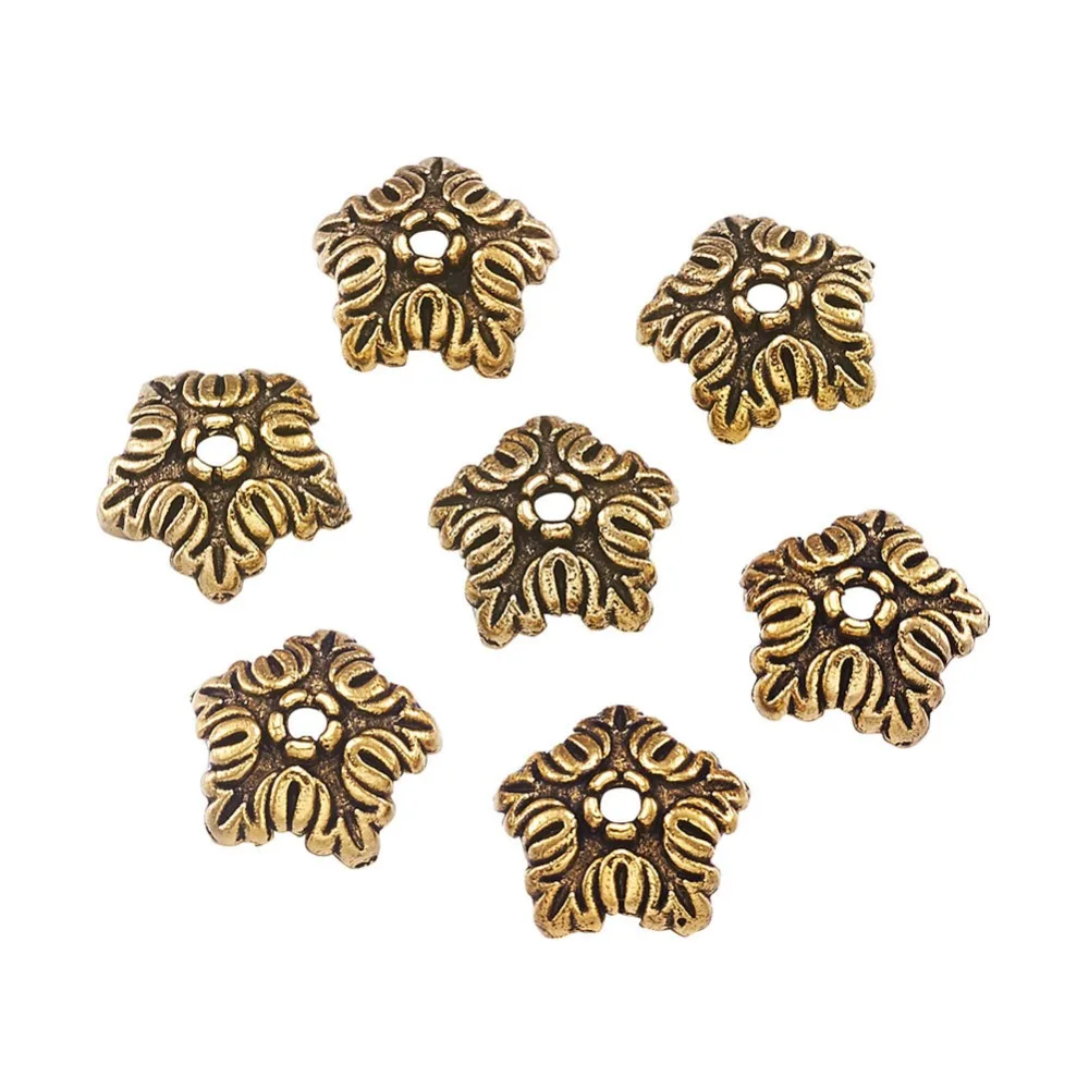 100 шт. тибетские античные бронзовыесеребряные цветные 5 лепестков цветок бусины Концевики для изготовления ювелирных изделий Рукоделие серьги ожерелье 10 мм
