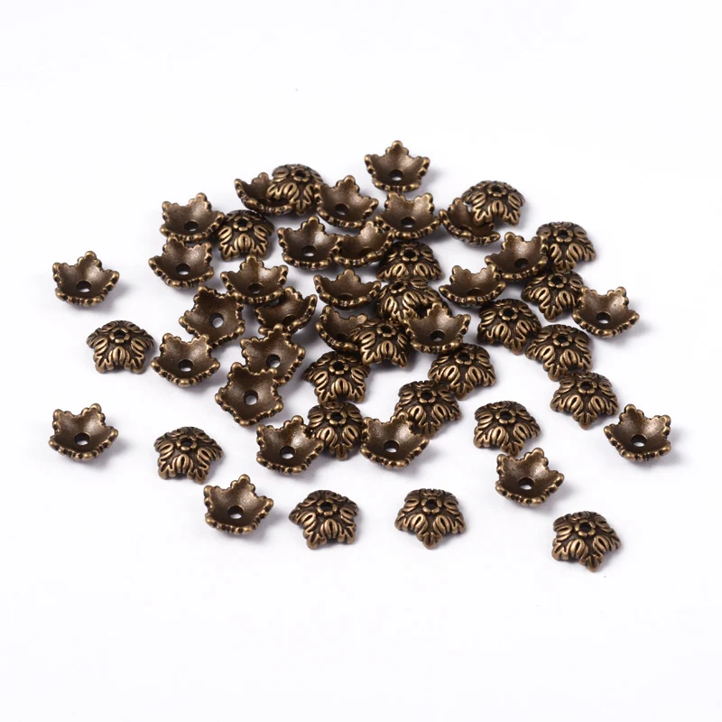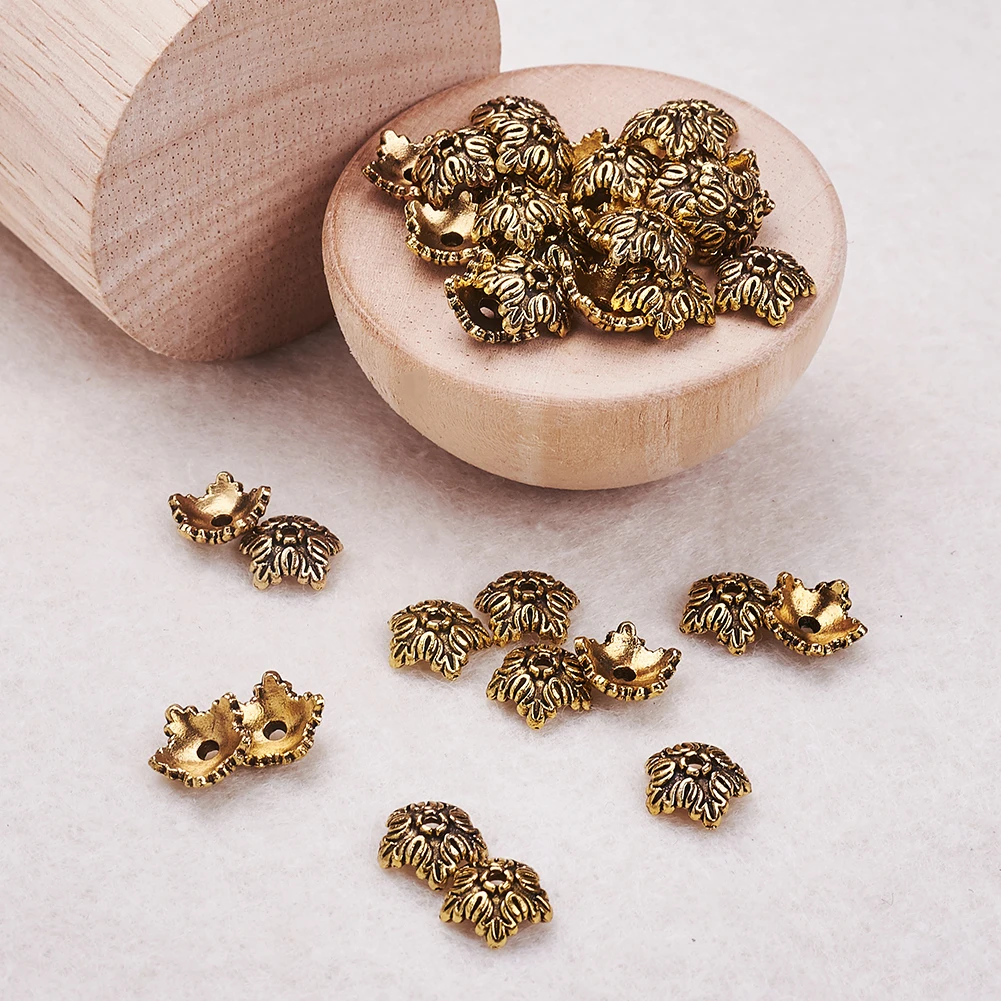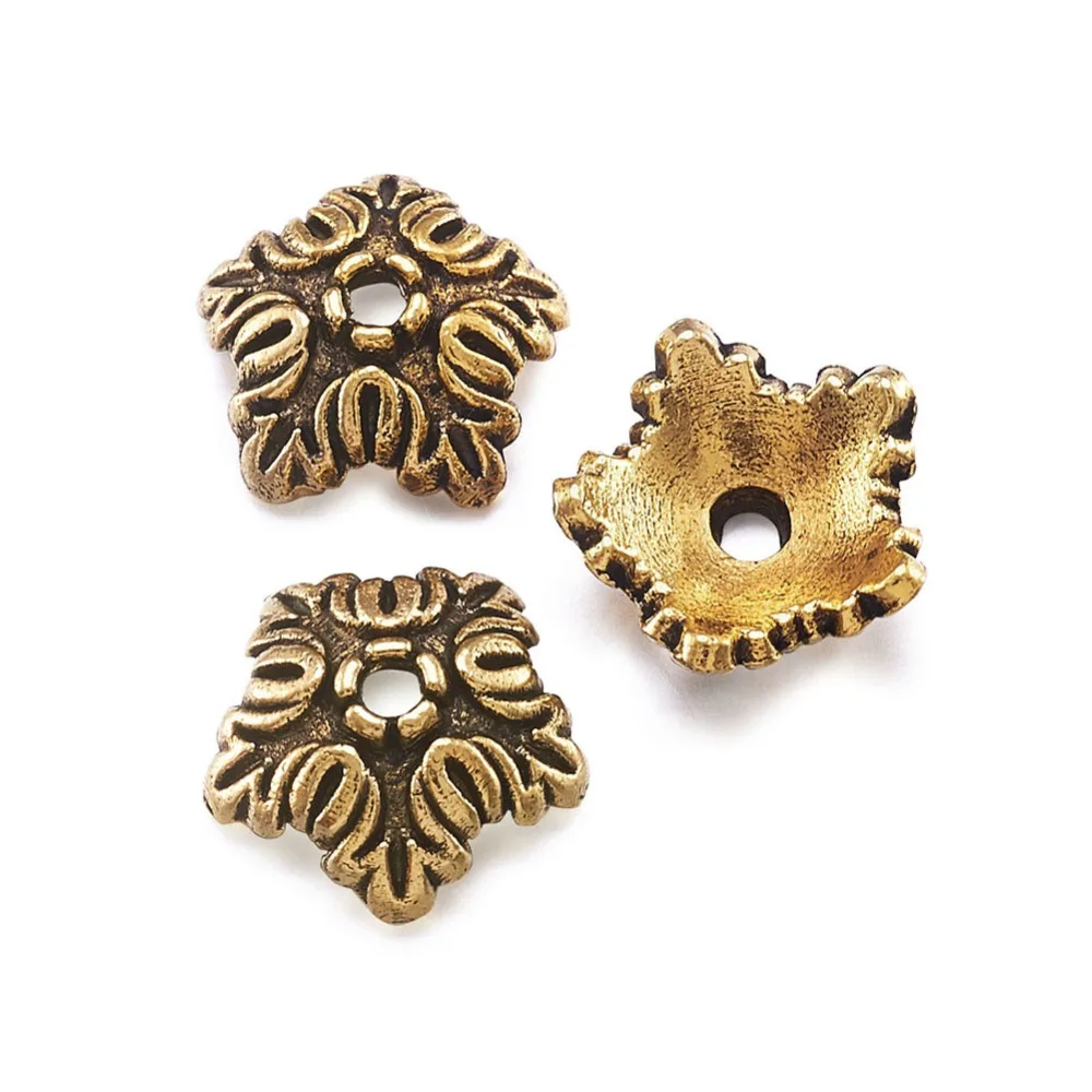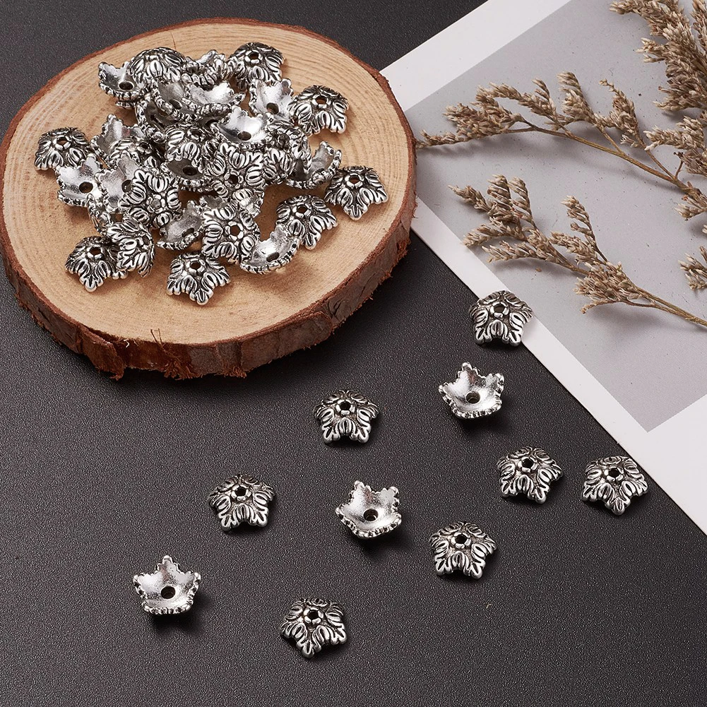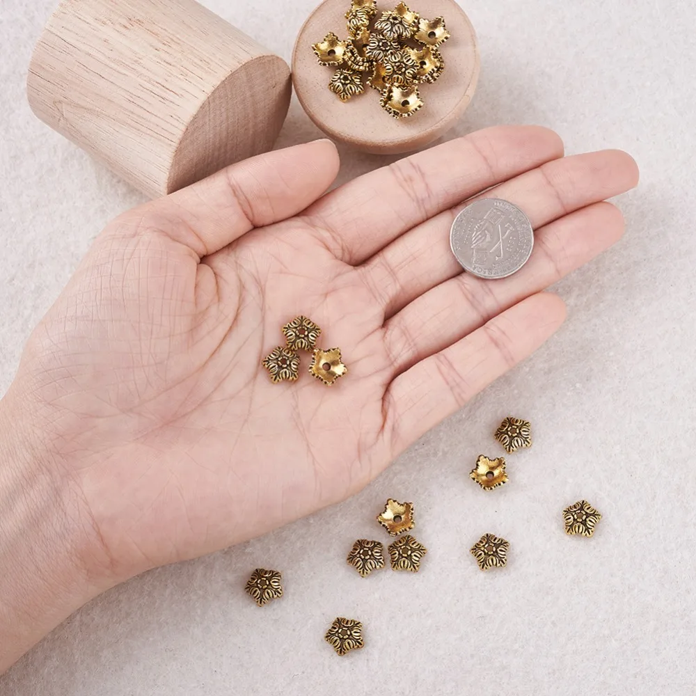 100 шт. тибетские античные бронзовыесеребряные цветные 5 лепестков цветок бусины Концевики для изготовления ювелирных изделий Рукоделие серьги ожерелье 10 мм