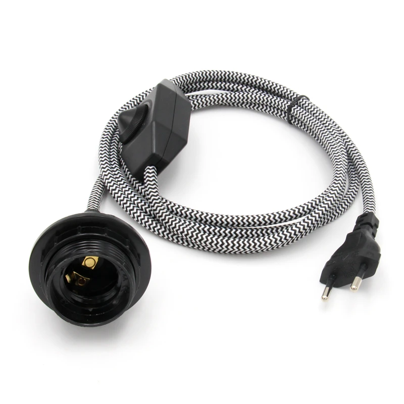 Винтажный шнур питания с евровилкой, 2 метра с диммером и патроном E27