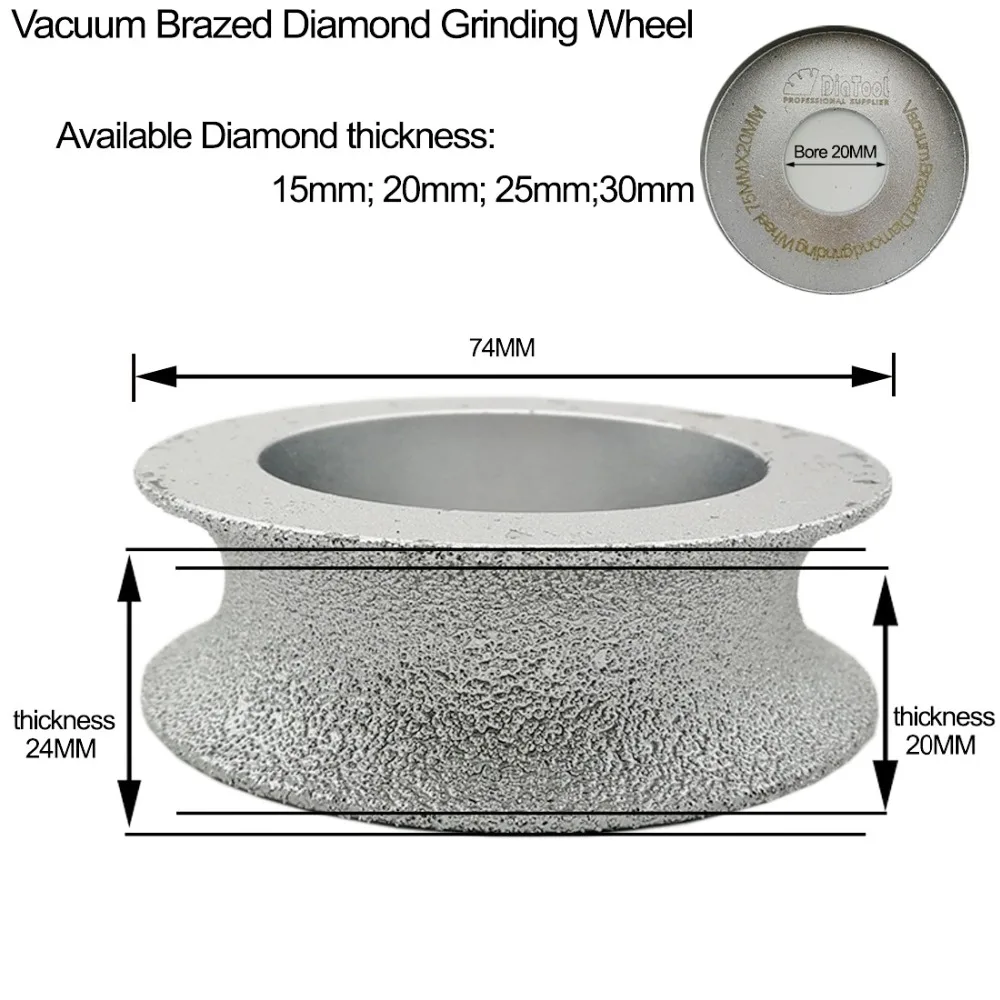 Алмазный шлифовальный круг DIATOOL, вакуумный припой 75 х20 мм, для круглого сечения профиля, кромок