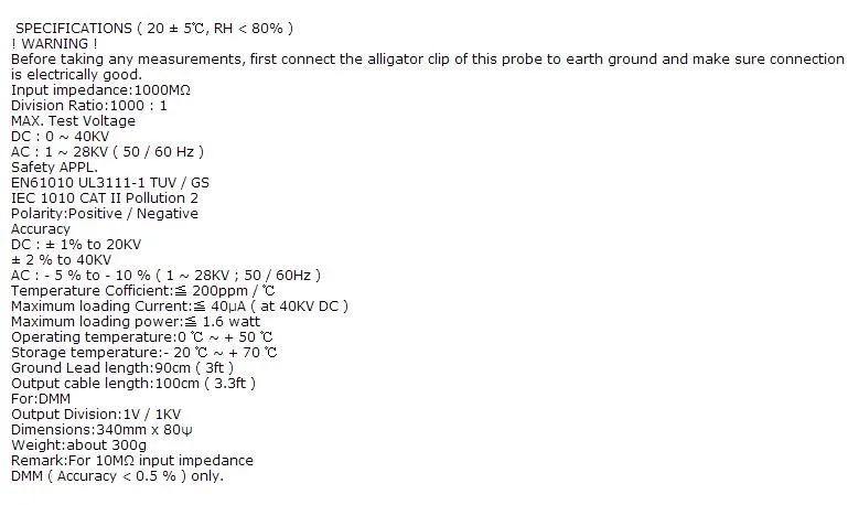 Высоковольтный зонд 40 кВ DC 28 кв AC 1000 МОм вход 1000:1 4 мультиметр гарантия icon star icon star icon star icon star icon star