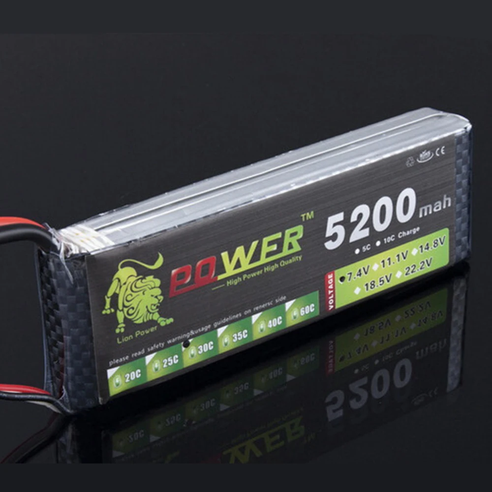 Литий-полимерный аккумулятор LION POWER 7,4 В 2S 5200 мАч 25C Литий-полимерный аккумулятор Радиоуправляемый вертолет Радиоуправляемый автомобиль Лодка Квадрокоптер дистанционное управление игрушки запчасти