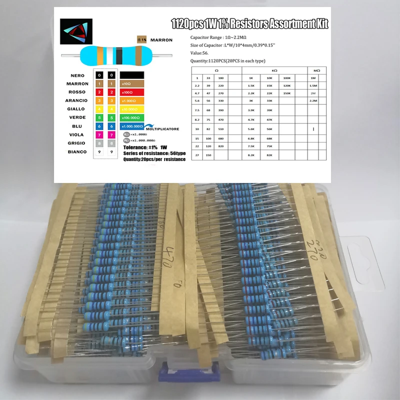 1120 шт., 1 Вт, 1%, 56 значений, 1-2,2 M Ом, стандартный набор