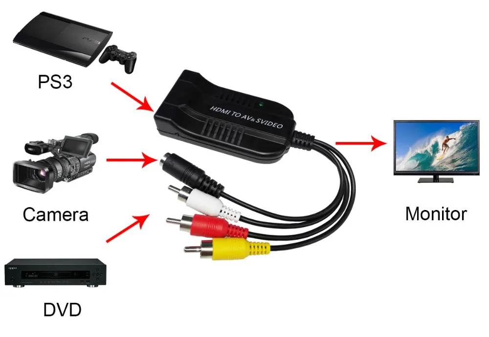 Этот конвертер предназначен для преобразования HDMI в композитное видео или S-видео. Это позволяет только оборудованное выходное устройство HDMI подключено к ЭЛТ-телевизору.В основном используется для тестирования AV оборудования. Предоставляет только 3 RCA и av-кабеля к телевизору и hdmi-дисплейному устройству, таким как HD TV, кроме того, источник питания, вы будете чувствовать себя захватывающим. Веселитесь!Примечание: Эта вещь не совместима с XBOX360.