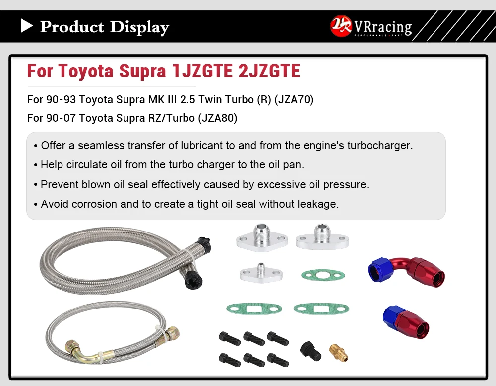 VR RACING-комплект фланцевых фитингов для подачи маслаДля Тойота Супра 1JZGTE 2JZGTE 1JZ/2JZ одиночный турбо VR-TOL22