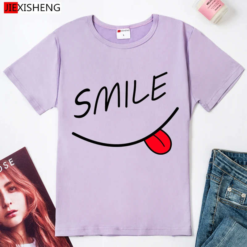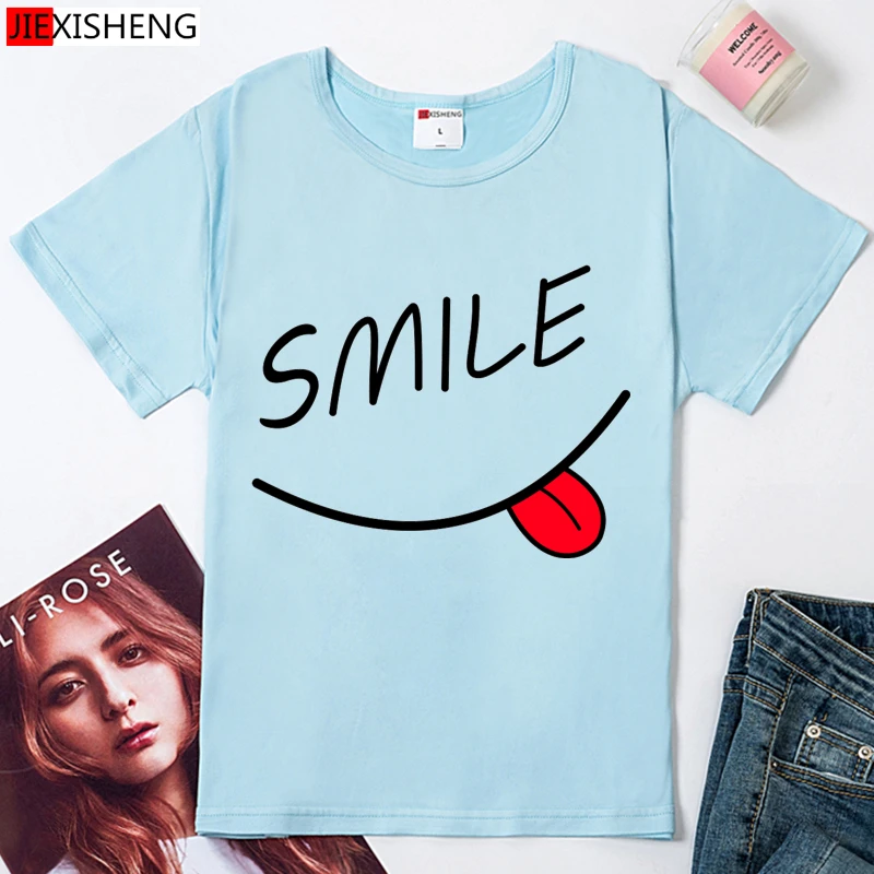 2021 летние брендовые новые женские ботильоны, модные, обтягивающие, хлопковые топы, футболки, футболка с рисунком в виде улыбки и коротким рукавом 3 Цвета футболка