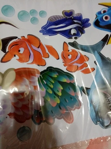 Наклейки пришли аккуратные, не помятые. Из всех рыбок три как будто напечатаны плохим принтером, не чёткие и размытые. А так в целом заказом довольна