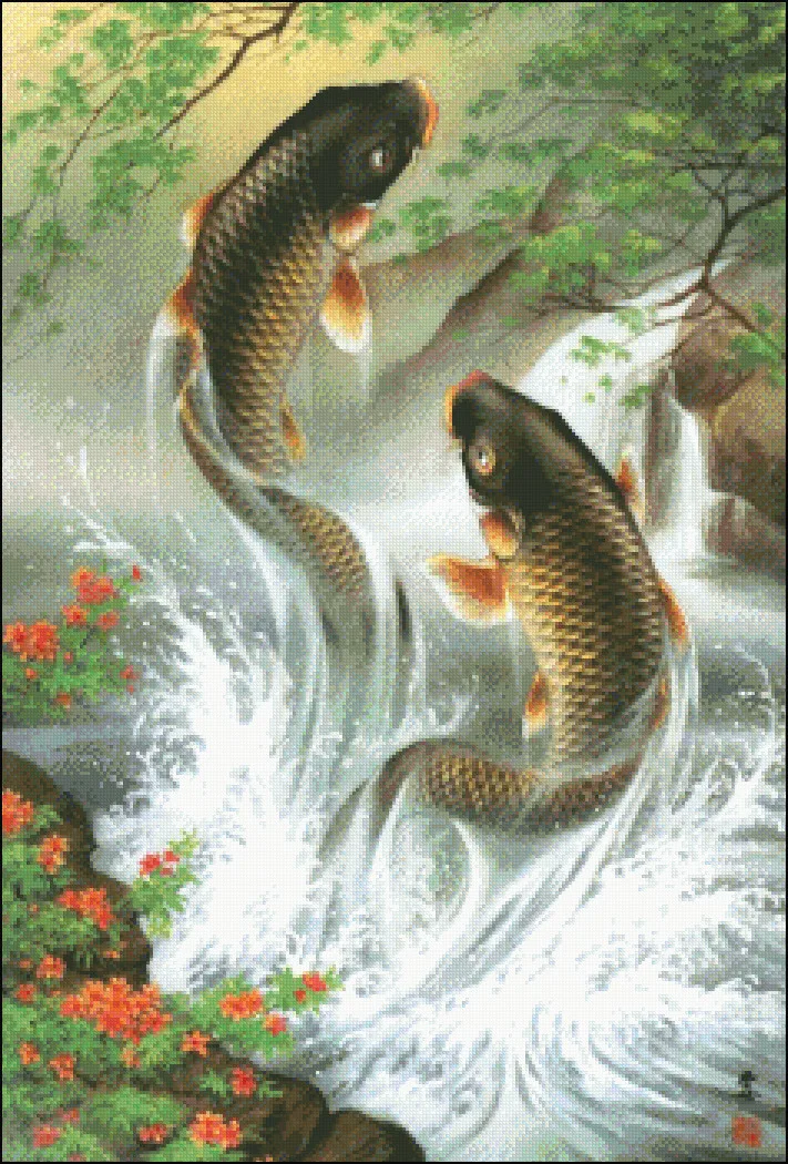 Это новый и нераскрытый полный набор для счетного крестика под названием"Карп восходящий."