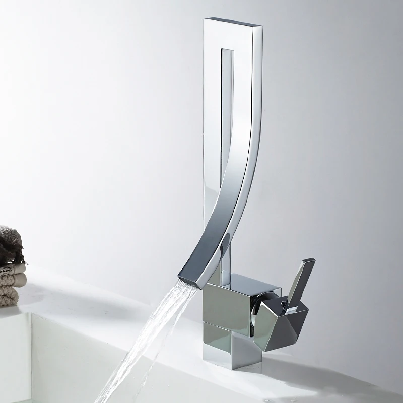 Яркий хромированный смеситель для раковины в ванную комнату, латунный смеситель-водопад, смеситель горячей и холодной воды кран с одной ручкой
