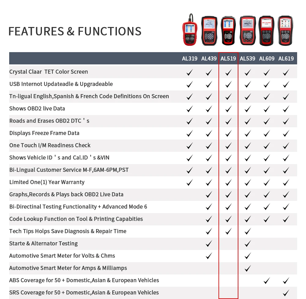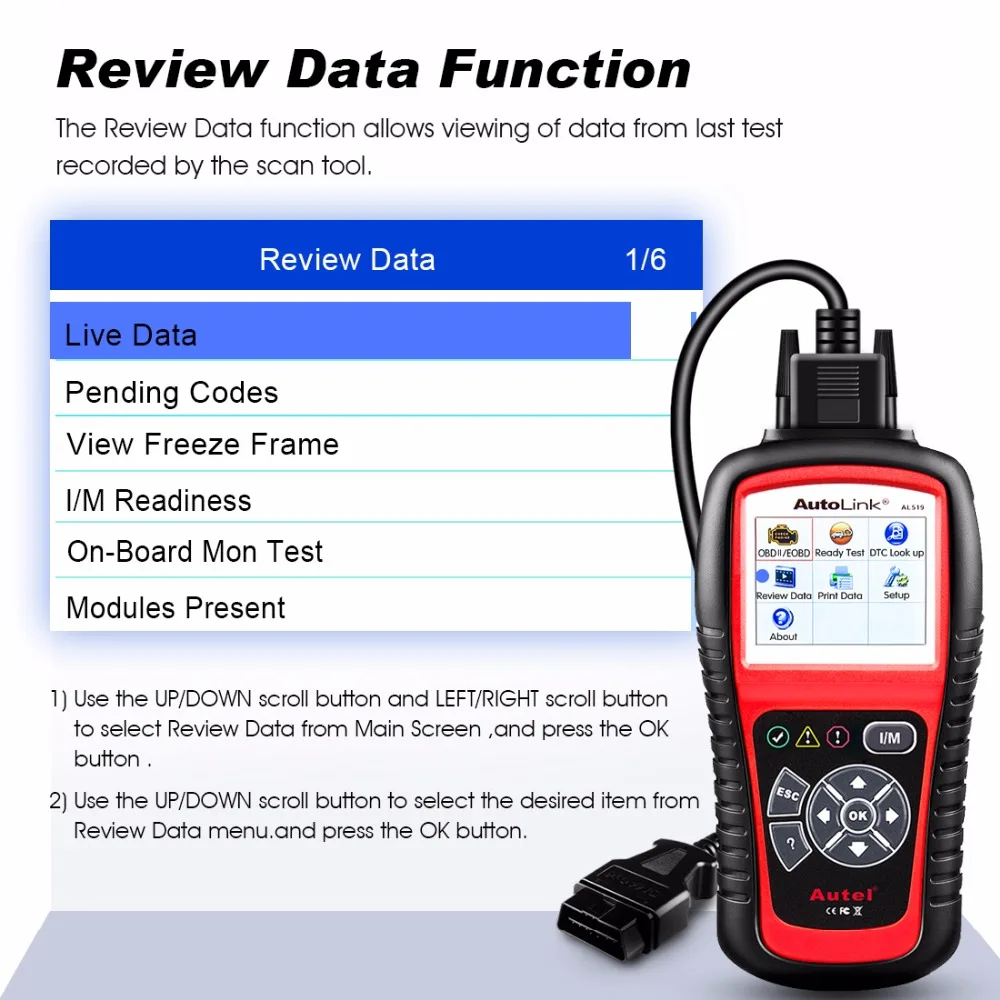 1 шт. x автоматическое соединение®AL5191 шт. Руководство пользователя1 шт. х USB кабель1 шт. кабель OBDII1 шт. x чехол для переноски