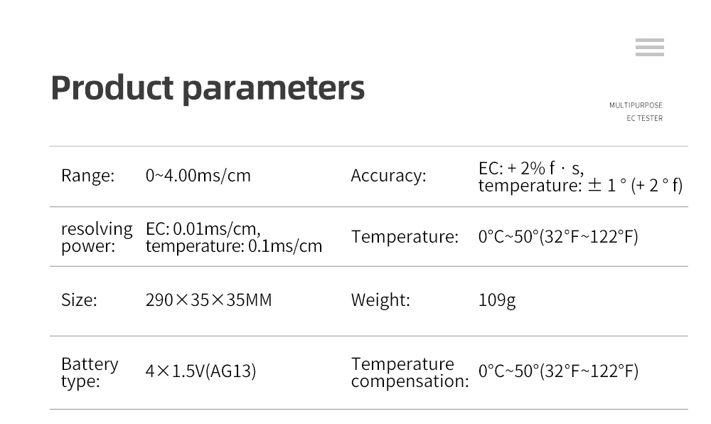 Товар пришёл в мятой коробке, сам прибор не много погнут, про работоспособность сказать не могу, нужна 9v батарейка по типу крона, под рукой пока нет. Инструкция на китайском и английском