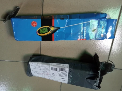 пришло быстро, упаковка целая, щуп немного погнут, это не важно, работу не проверил нет батареек