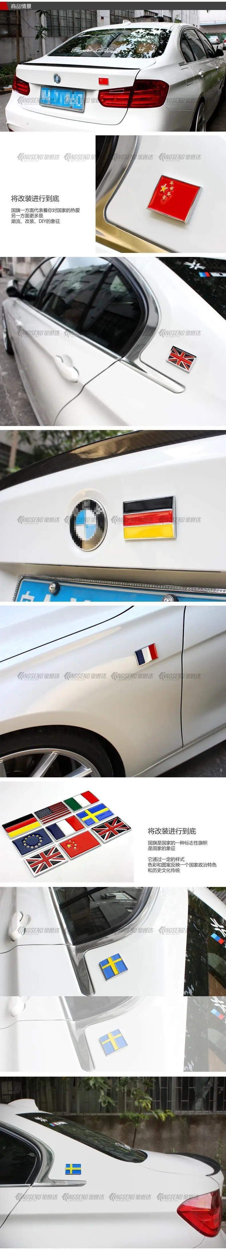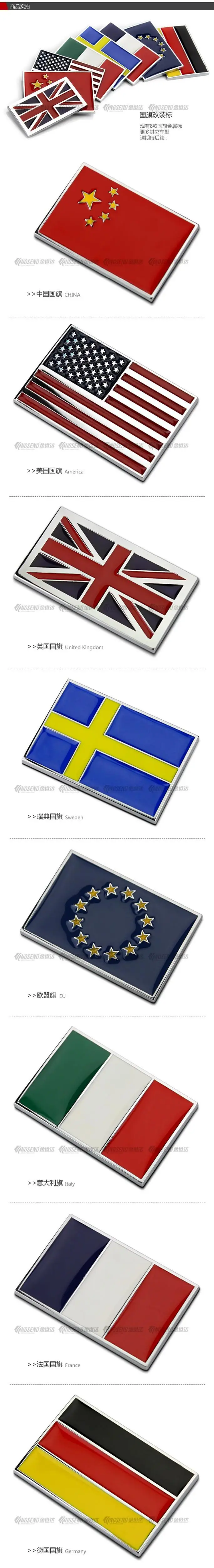 Металлическая наклейка сделай сам для кузова автомобиля, с флагом США, Великобритании, Франции, Италии, Швеции