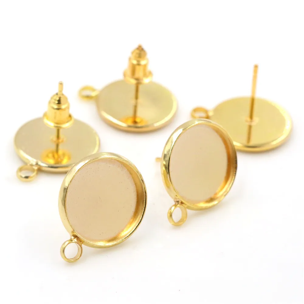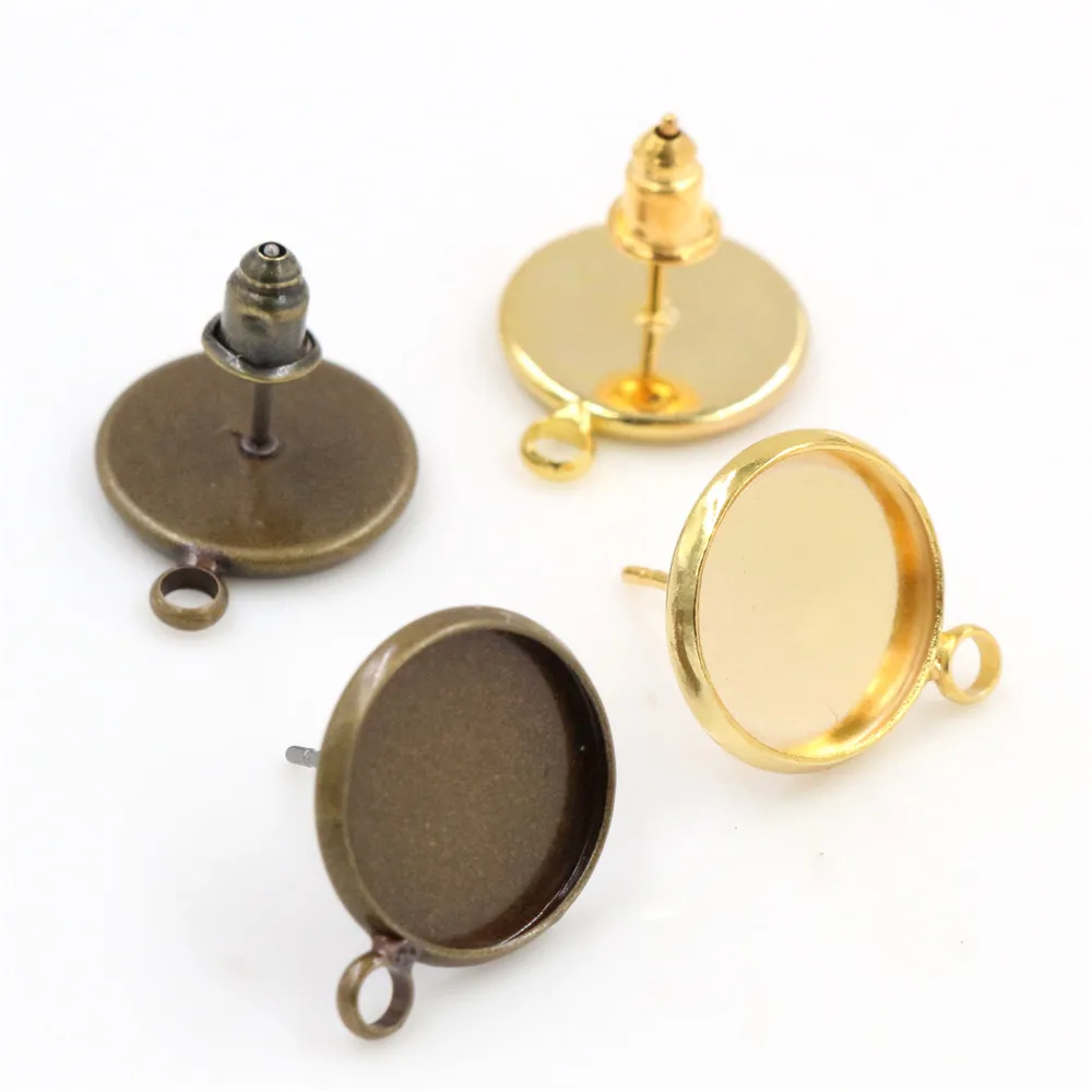 12 мм 10 шт антикварные бронзовые и золотые серьги-гвоздики, серьги пустыеБазовые, подходят 12 мм Стеклянные Кабошоны, кнопки; Серьги-оправы