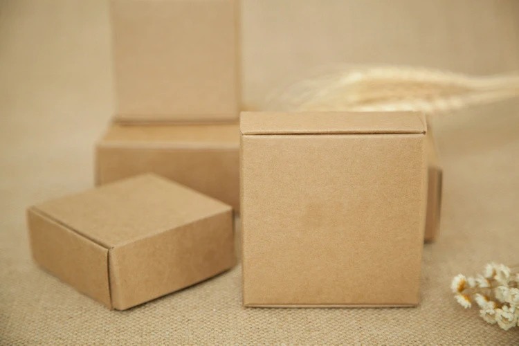 30 шт. 4*4*2 см авиационная коричневая подарочная упаковка, коробка из крафт-бумаги для ювелирных изделий, свадьбы, конфет, шоколада, торта, коробки для упаковки мыла ручной работы