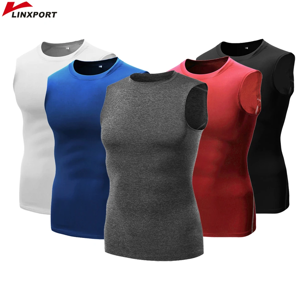 Для мужчин Профессиональные колготки без рукавов футболки база Слои тройники быстрое высыхание Топ спортивный Шестерни Тренажерный зал Бег Йога Training Фитнес футболка