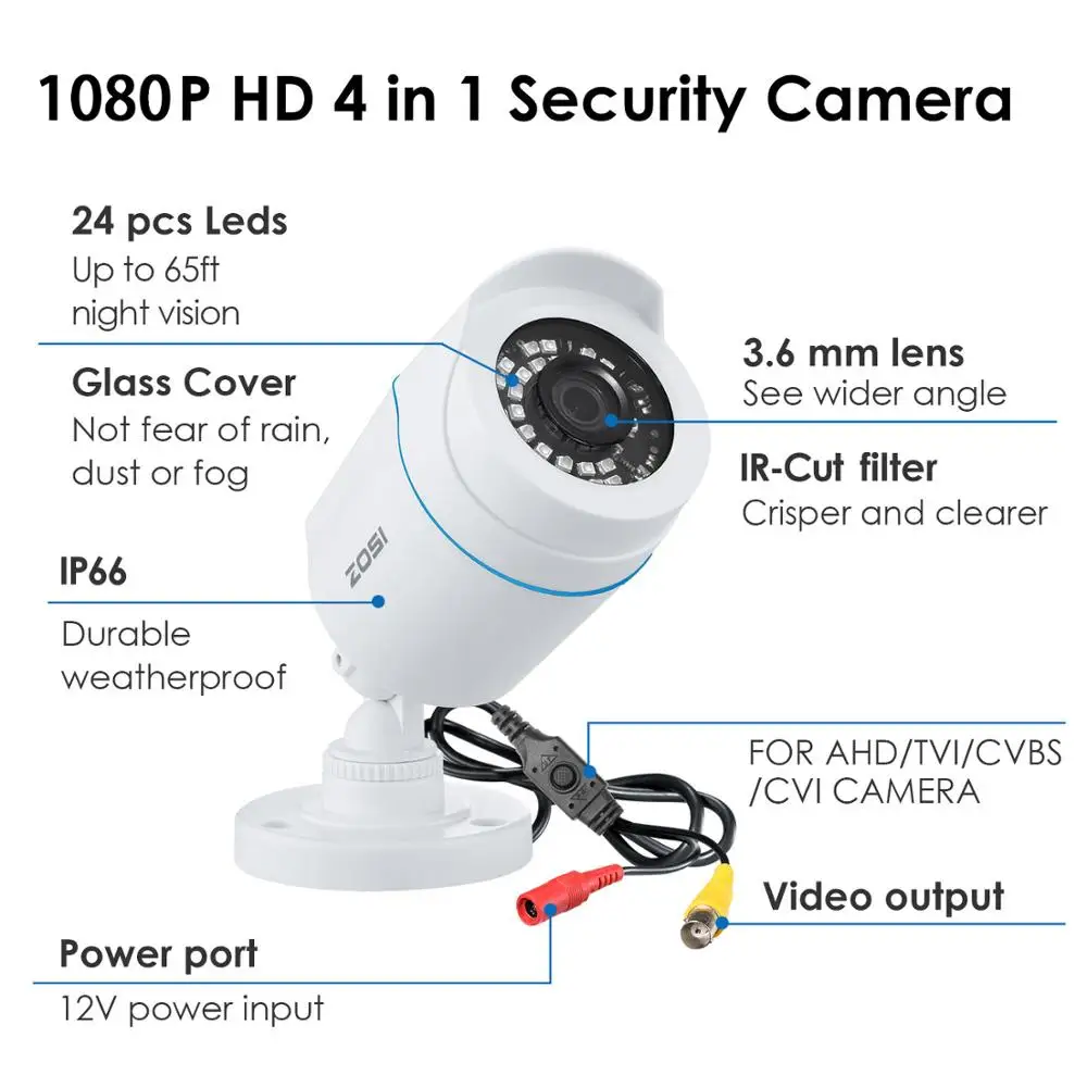 ZOSI HD 1080P 2MP AHD аналоговая CCTV камера безопасности с водонепроницаемой для наружного видеонаблюдения ИК ночного видения улица