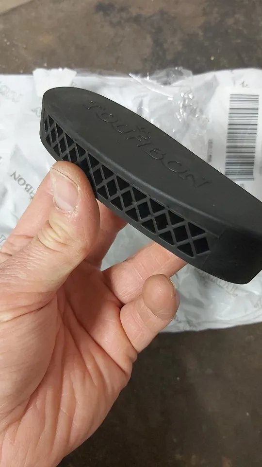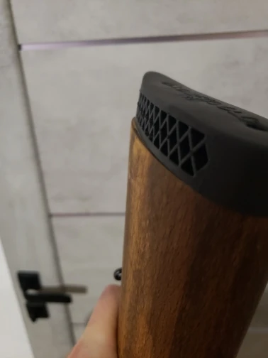 Товар, как в описании. Резина в меру жёсткая, выглядит не плохо. Отверстий для крепежа не имеет, поэтому сверлите под свой приклад. На МЦ-2112 села идеально, снял старый затыльник и поставил новый, ничего не резал и не подтачивал. На охоте проверим ощущения.