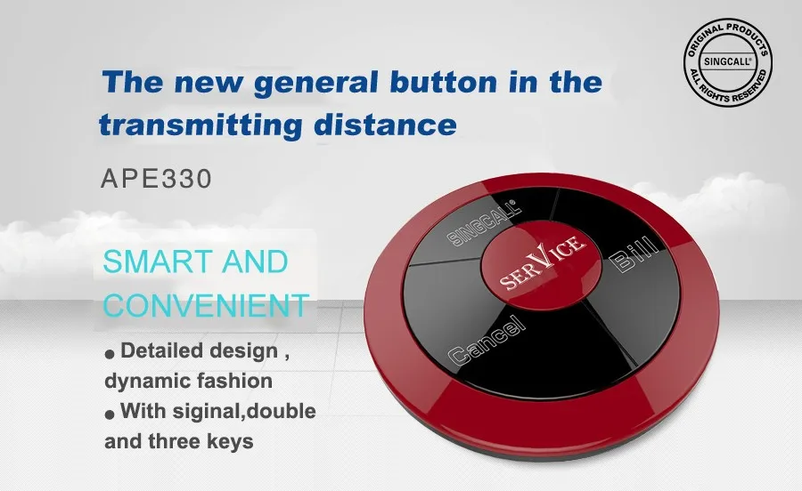 Вызовы SINGCALL Service, несколько кнопок с 3 опциями, обслуживание, счет, отменка, три клавиши вызова в ресторане пейджер APE330 красный