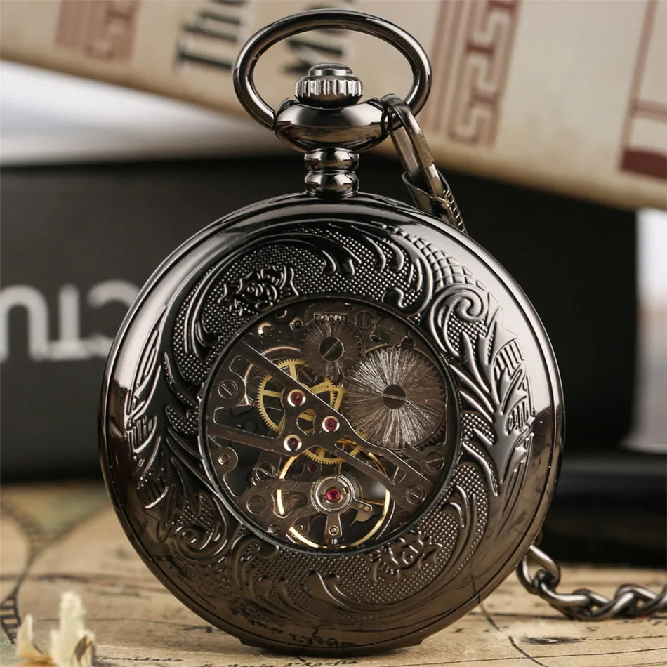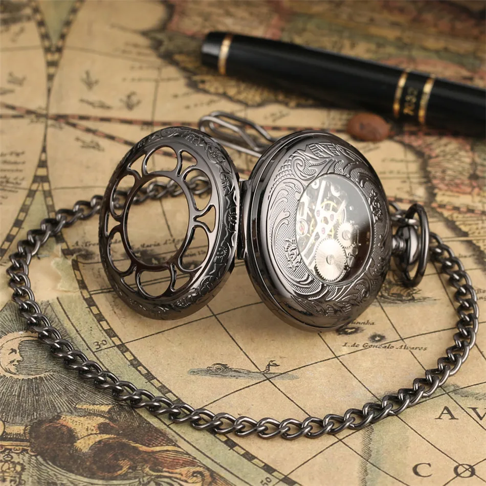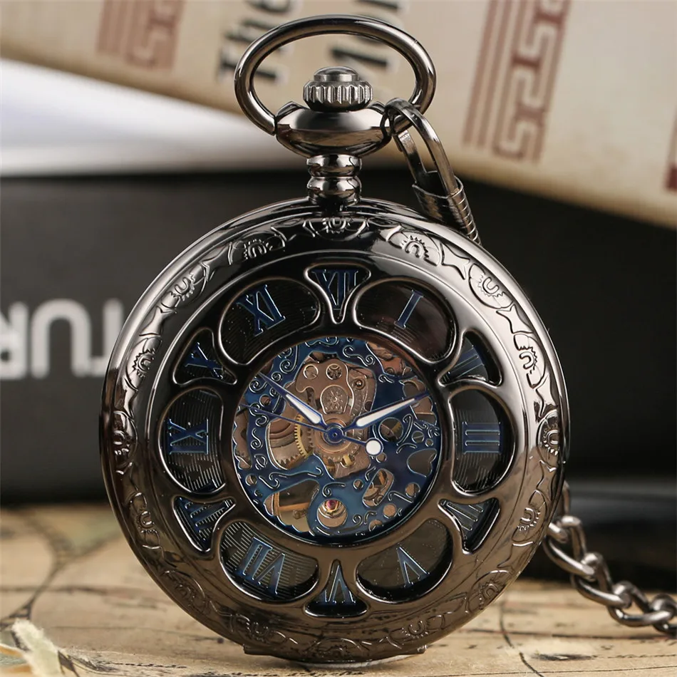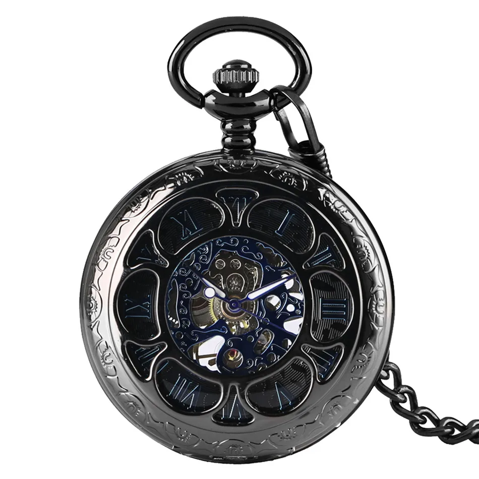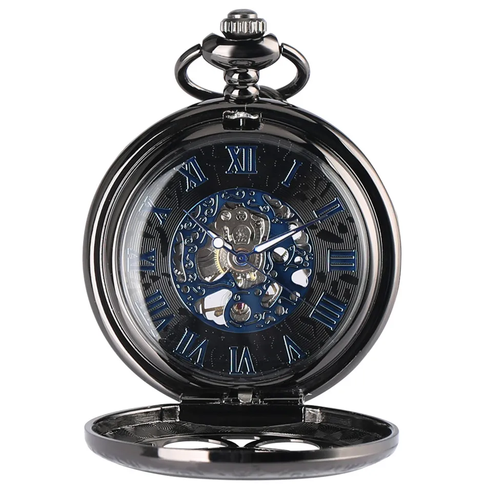 Механические карманные часы в стиле стимпанк, с циферблатом, с циферблатом и синим скелетом и римскими цифрами