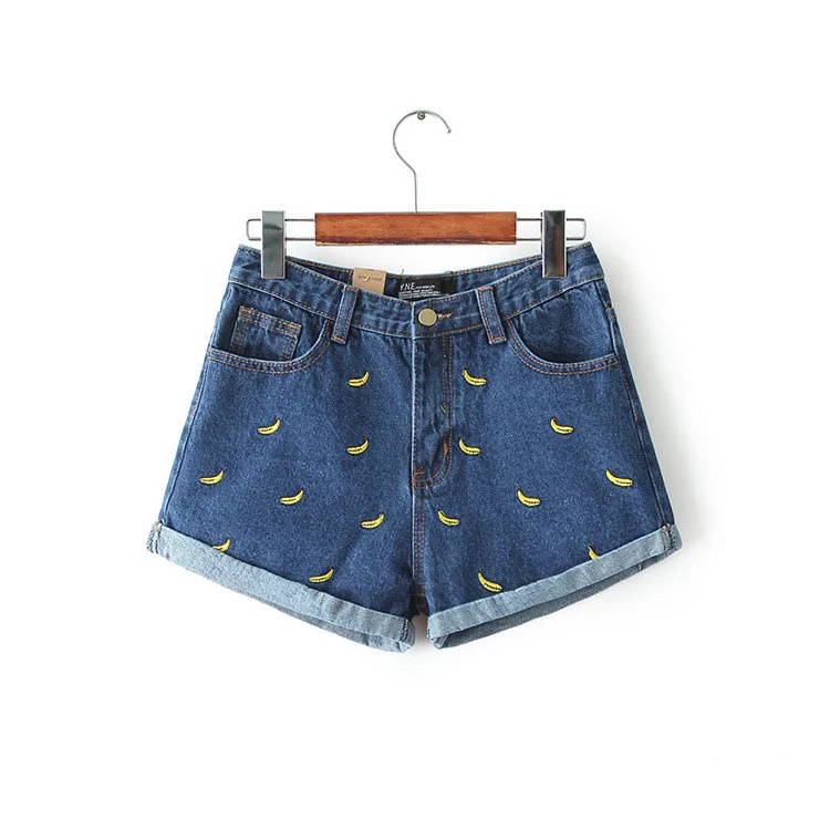 Модные корейские джинсовые шорты Vangull, женские летние джинсовые шорты с банановой вышивкой, повседневные женские джинсовые шорты с высокой талией