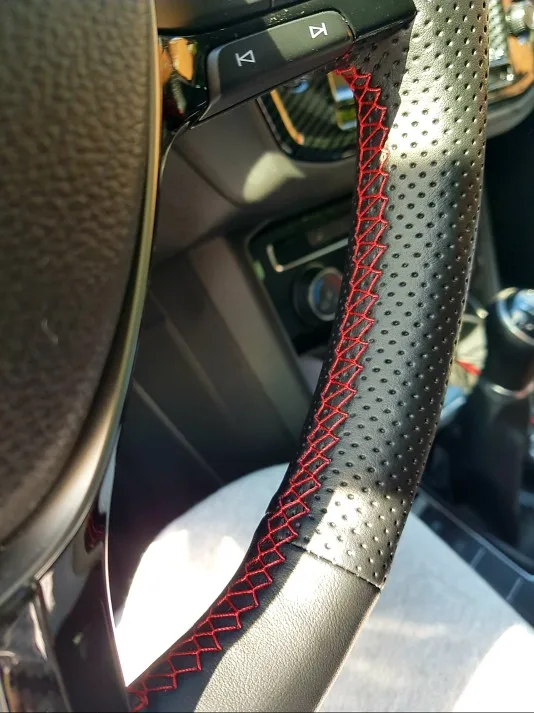 Чехол на руль из черной кожи, прошитый вручную, блестящий, для Volkswagen VW Golf 7 Mk7, Polo Jetta Passat B8