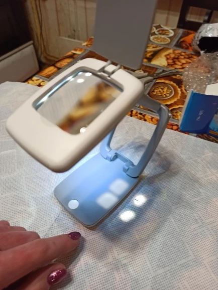 Благодарю и сервис AliExpress и того, кто производит эту замечательную штуку. Очень приятная вещь. В сложенном состоянии напоминает небольшую мыльницу. Читать книжки только через неё не получится, поле зрения маловато, но она для этого и не предназначена. Хорошо, что возможна затяжка шарниров винтами. Можно использовать вместо прикроватной лампочки. При слишком сильном наклоне верхней части вперёд, она перевешивает основание, но если такой наклон зачем-то и потребуется, то можно дополнительно загрузить нижнюю часть. В общем, мне очень понравилось, ещё раз благодарю!