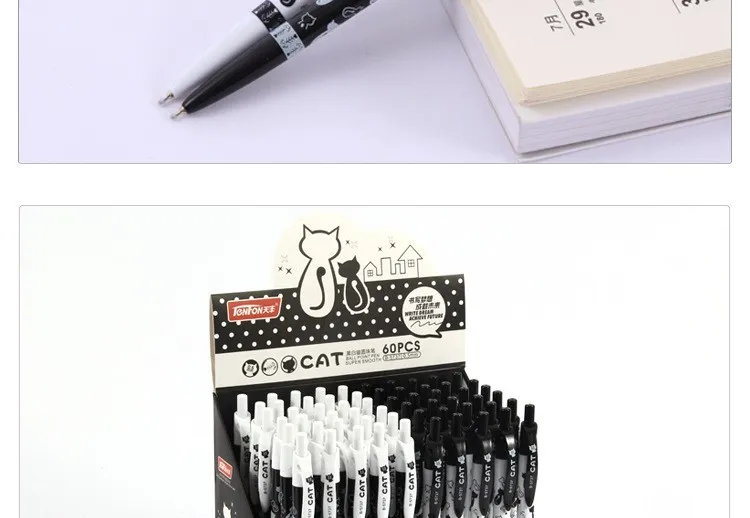 60 шт./лот kawaii Канцелярские милые черно-белый цвет кошка шариковые ручки для написания 0,5 мм ручка с синими чернилами комплект офисные школьные принадлежности, блокноты