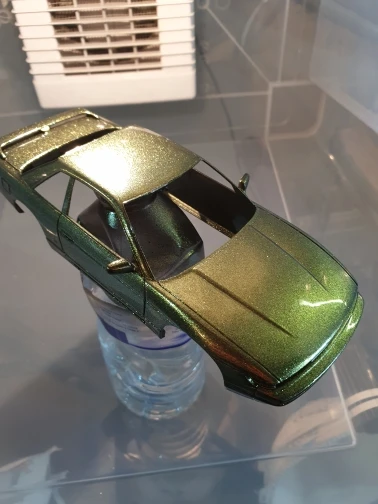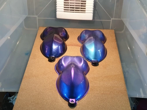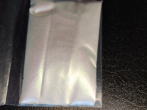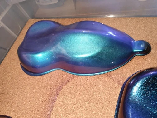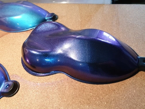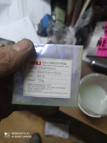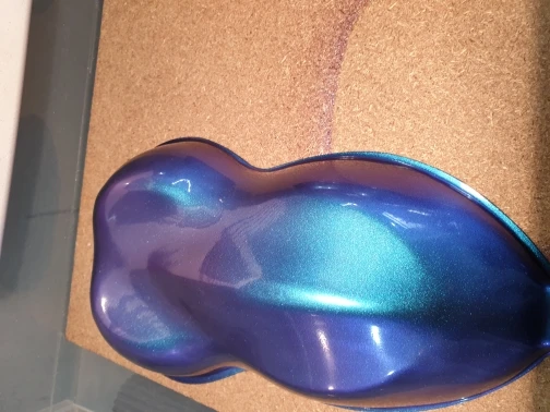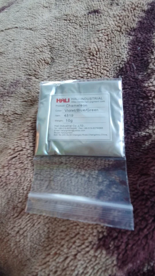 Отличный пигмент, мелкий помол. Цвет меняется в зависимости от угла обзора. Лучше смотрится на чёрной подложке, но и на белом интересный эффект. Доставка быстрая
