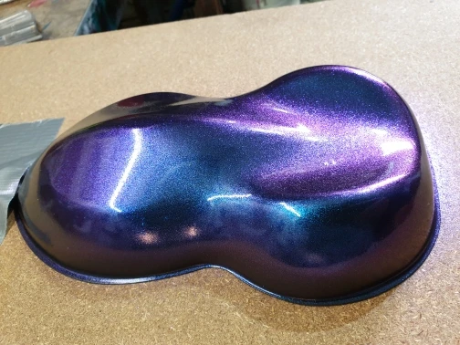 До Воронежа 2 недели. Зерна среднего размера, порошок белый с огромным спектром интерференции - фиолетовая, красная, оранжевая, желтая, изумрудная, зеленая. Аналог по Шпицу - РР901. Если смешать с любой темной краской, получится офигенный хамелеон, советую для полного окраса авто.