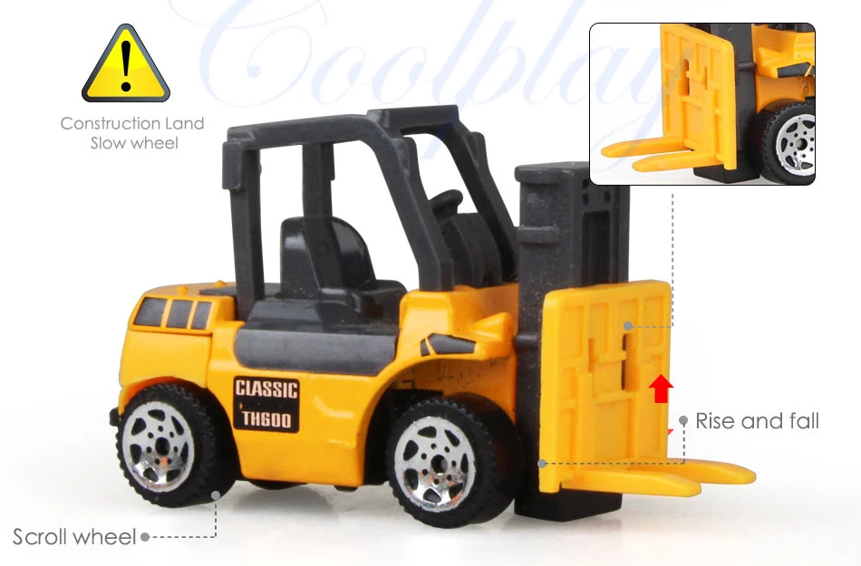 Coolplay 6 шт. мини-модель литая автомобиля, строительные игрушечные автомобили из сплава, Инженерная машина, грузовик, вилочный погрузчик, модель игрушек для мальчиков, детей icon star icon star icon star icon star icon star