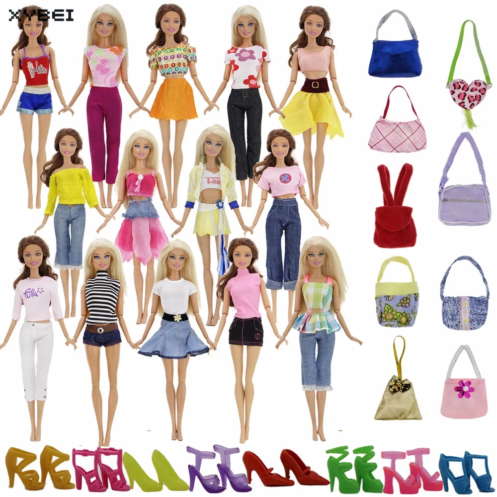 Комплект одежды для куклы Барби, набор игрушек для детей, комплект из 20 предметов = 5 предметов одежды + 10 ботинок + 5 сумочек