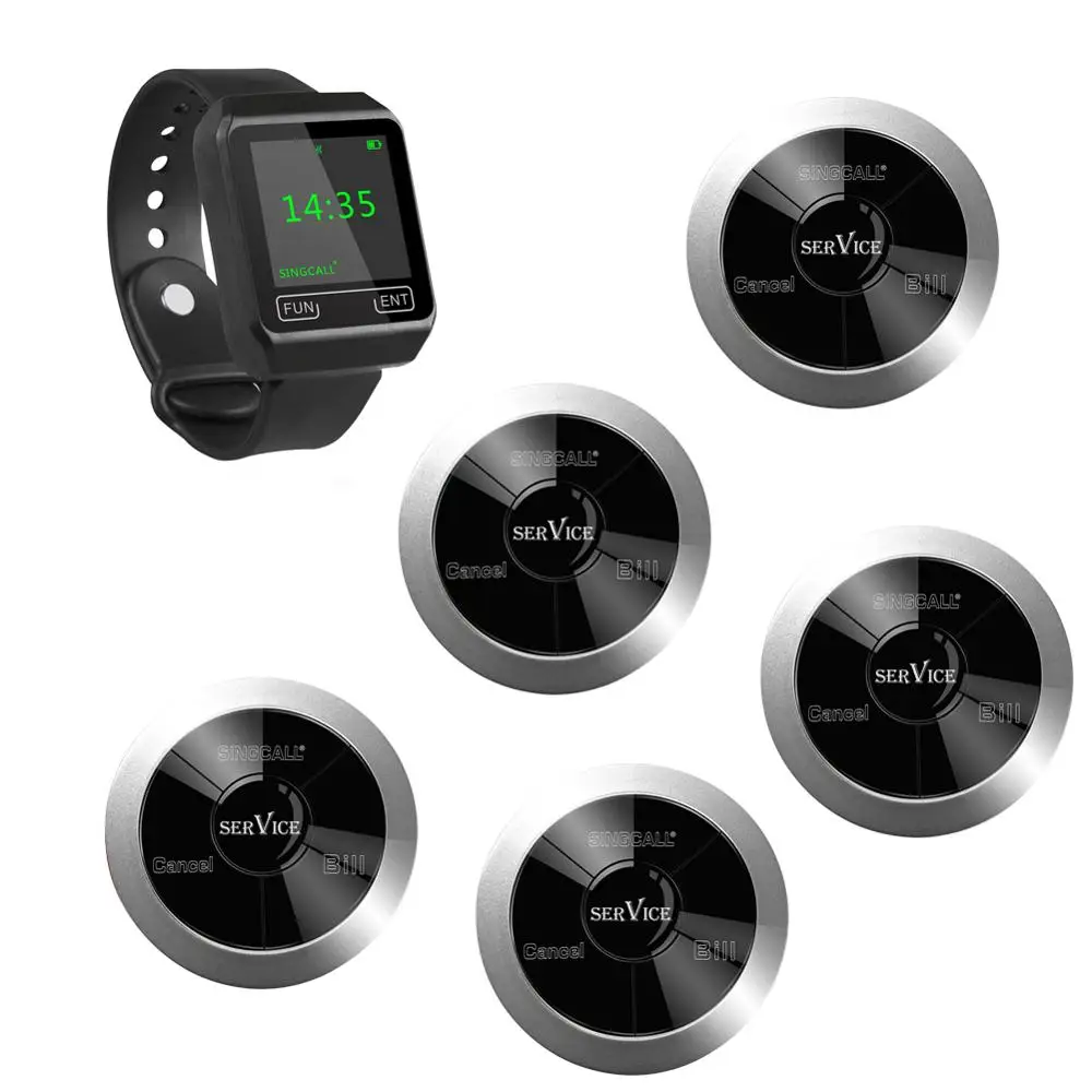 SINGCALL Беспроводной вызова и репутация на Системы колеблется, 5 Водонепроницаемый кнопки вызова с тремя ключами и 1 Часы приемника