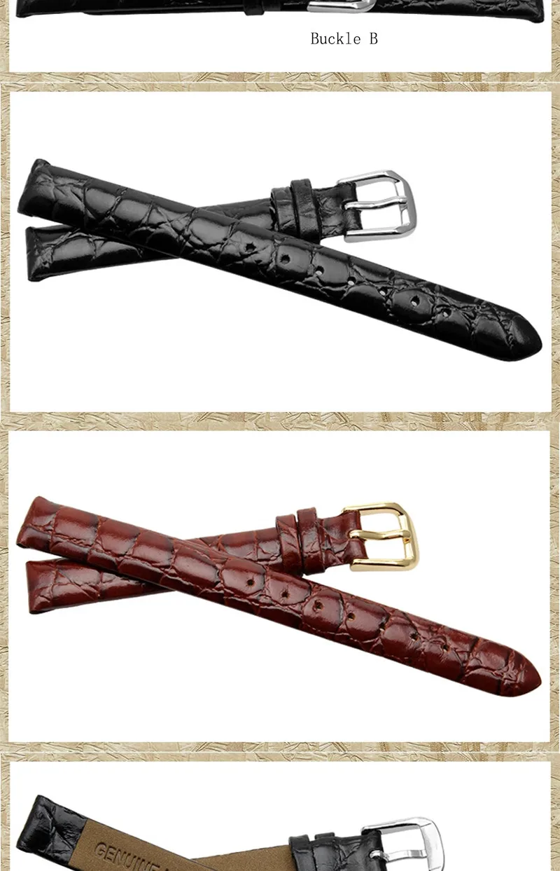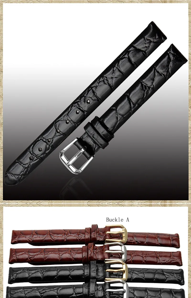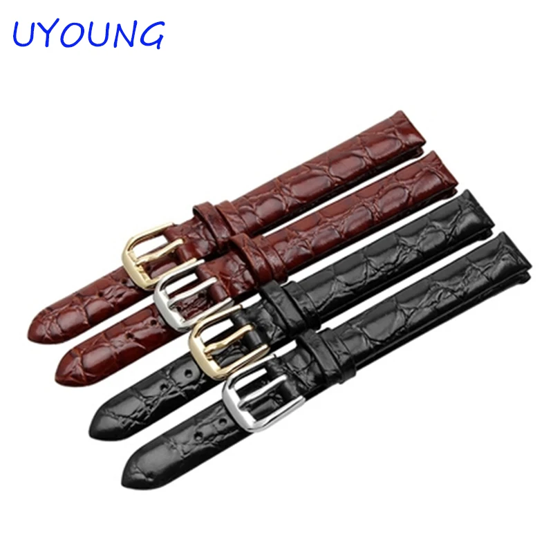 Ремешок из натуральной кожи для женских наручных часов, дизайнерский прочный Браслет Черного, коричневого цветов, маленький, 6 мм, 8 мм, 10 мм, 12 мм, 13 мм