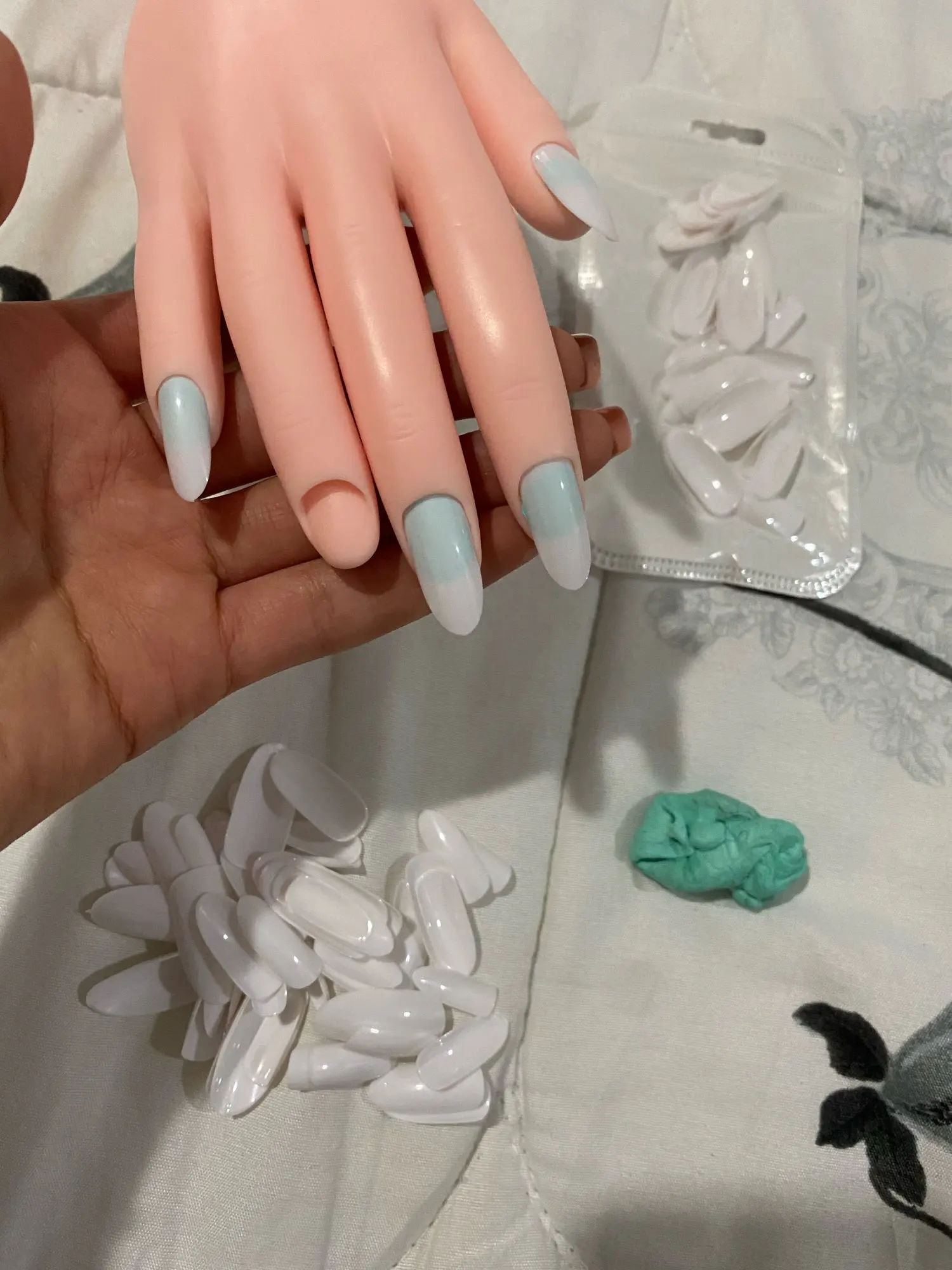 Идеально подходит для тренировок. В комплект не входят грядки для ногтей, поэтому вам либо придется создать 1 или разрезать в руку под область кутикулы, как я это сделал, и приклеить кончик для ногтей там, чтобы создать кровать для ногтей.