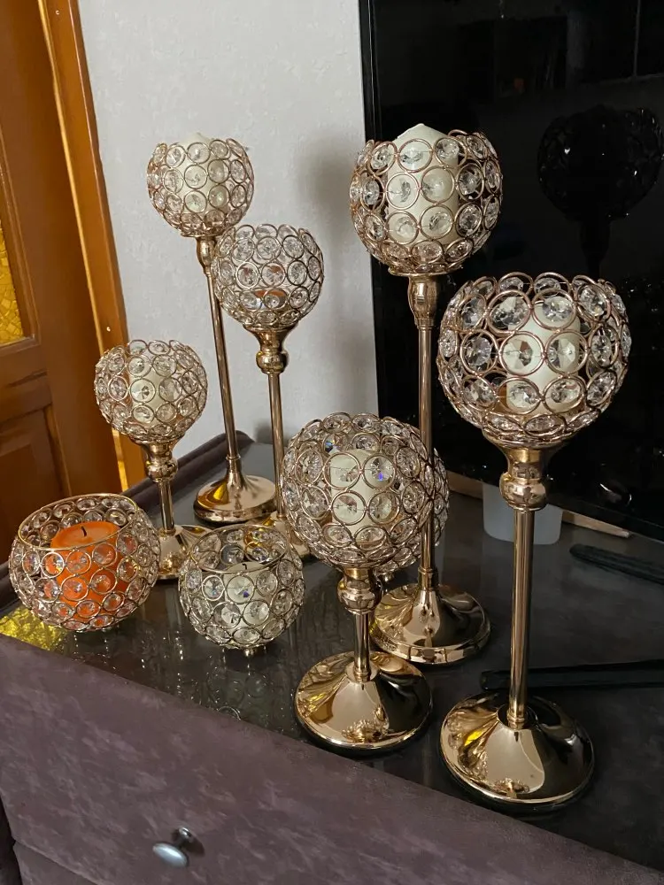 Хрустальные подсвечники для чайной свечи, металлическое стекло, украшение для рождественского стола Свадебные подсвечники