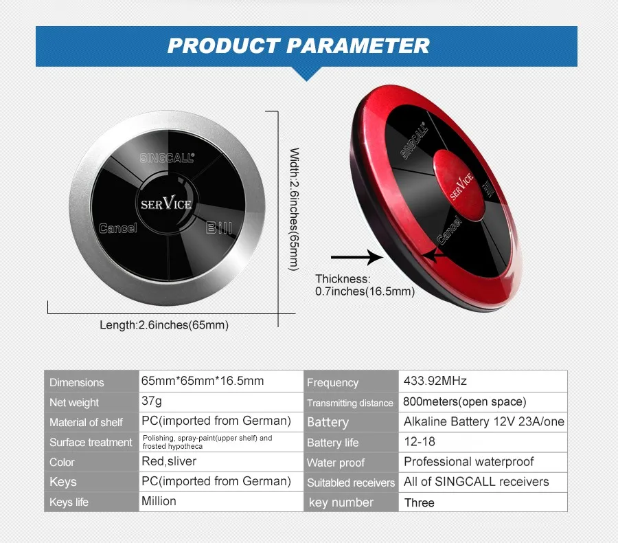Беспроводная система вызова широко используется в области обслуживания. Это кнопка для использования гостем. Когда гость нуждается в какой услуге, он или она просто нажмите кнопку рядом с ним, его или ее номер стола будет отображаться в музыки или смотреть пейджер предупреждающий голос. Поэтому официант может обеспечить очень своевременное обслуживание. Это делает общение с гостями простым и эффективным. Информирование клиентов, информирование персонала и бесперебойная работа, удовлетворяет клиента и сервер одновременно. Добро пожаловать на выбор устройства беспроводной системы вызова.